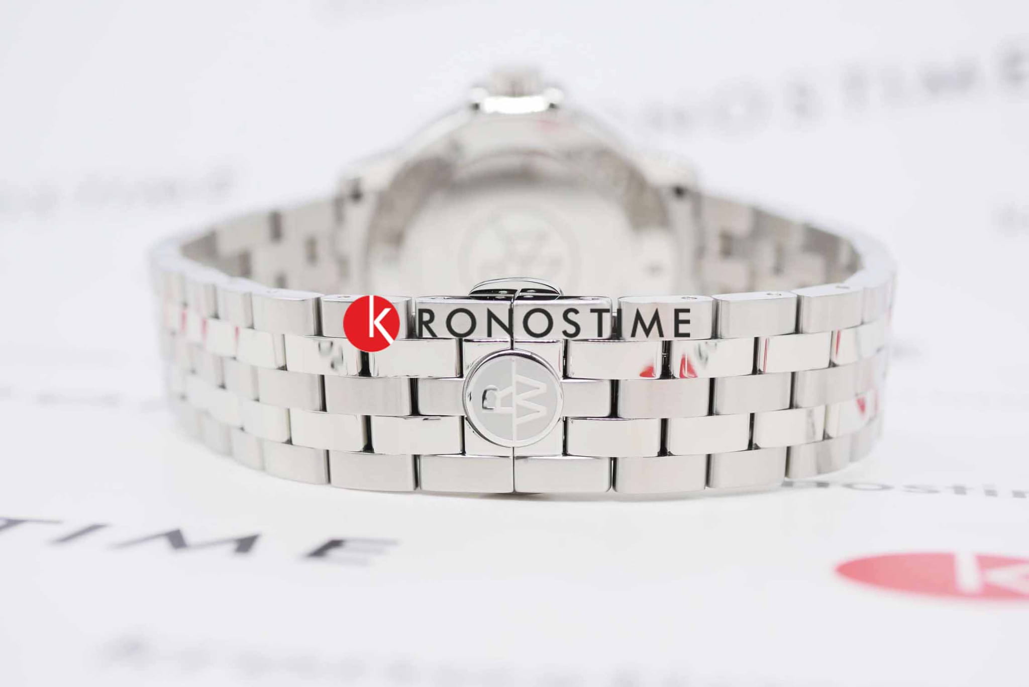 Модель оснащена фирменным безелемБезельВнешний ободок, закрепляющий стекло. В спортивных часах так называется поворотное кольцо с делениями на циферблате, выполняет роль таймера – замеряет отрезки времени на шкале. Неподвижный безель – элемент декора. Однонаправленно вращающийся безель на дайверских часах позволяет фиксировать моменты погружения и выныривания на поверхность. с шестью декоративными винтами и завинчивающейся заводной головкой с защитой и логотипом RW. Завинчивающаяся задняя крышка и стальной браслет на раскладной застёжкеРаскладная застёжкаТакой тип застёжки используется только на браслетах из металла. Она никогда не раскрывается полностью, происходит разделение на 2 и более частей. Раскладывающая застёжка снизит вероятность потери часов к минимуму. с двойной системой защиты добавляет уверенности в использовании.