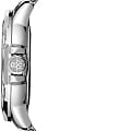 Циферблат с метками в виде штрихов покрыт прочным сапфировым стекломСапфировое стеклоПрочный и надёжный материал из кристалла сапфира синтетического происхождения, характеризующийся особой твёрдостью и устойчивостью к царапинам и повреждениям., которое защищает часы от царапин.