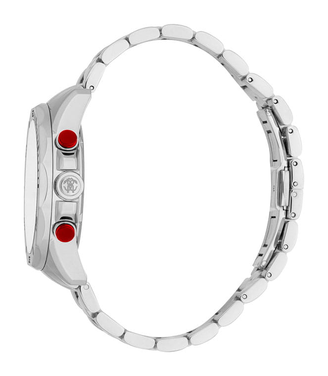 ROBERTO CAVALLI Uomo Sport III RC5G109M0055 — стильные итальянские часы-хронографХронографФункция позволяет измерять отрезки времени с особой точностью: часы, минуты, секунды. Верным признаком хронографа является наличие на циферблате 3 дополнительных окошек-счётчиков. сочетающие в себе элегантность и современный функционал. Корпус диаметром 42 мм выполнен из нержавеющей стали, толщина корпуса составляет 9 мм, что придает модели выразительный внешний вид и надежную защиту от внешних воздействий. Циферблат, искусно оформленный фирменными элементами Roberto Cavalli, притягивает взгляд и подчеркивает ваш безупречный вкус. Часы оснащены кварцевым механизмом, также обладают функцией отображения даты, что делает их удобными для ежедневного использования. Минеральное стеклоМинеральное стеклоМинеральное стекло представляет собой искусственно выращенный минерал кварца. Такое стекло отличается особой устойчивостью к повреждениям и царапинам. Уступает по некоторым качествам сапфировому стеклу. защищает часы от царапин. Водозащита 100 метров позволит плавать, нырять и заниматься другими водными видами спорта. Стальной браслет на застёжке-бабочке с кнопкамиЗастёжка "бабочка"Такой вид застёжки дополняется предохранителями, помогающими избежать случайного раскрытия браслета. Обладают изящным исполнением. обеспечивает комфортное ношение. Стрелки и метки с люминесцентным покрытиемЛюминесцентное покрытиеПозволяет считывать показания времени в темноте. Производители наносят на стрелки, часовые индексы, безель или поверхность циферблата светонакопительный состав, дающий холодное свечение. обеспечивают отличную читаемость в любое время суток.