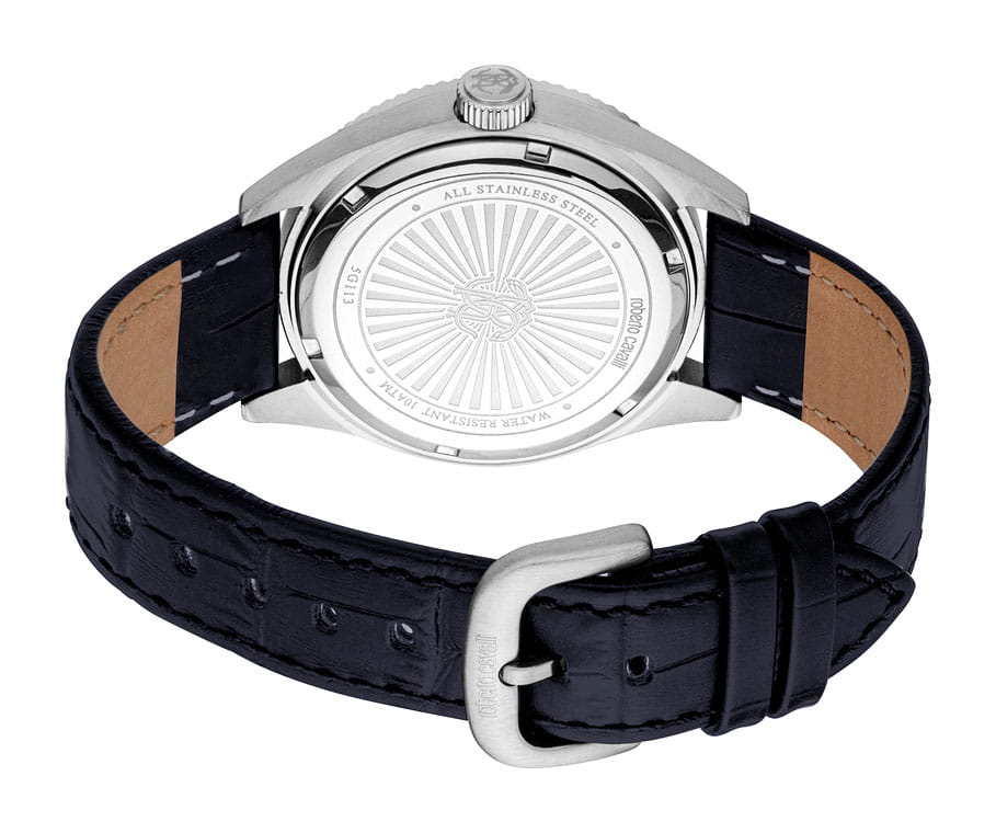 Погрузитесь в мир роскоши и безупречного стиля с мужскими наручными часами ROBERTO CAVALLI RC5G113L0025. Эти часы – воплощение смелого дизайна и итальянской элегантности, созданные для мужчины, который ценит внимание к деталям и не боится заявить о себе. Круглый корпус диаметром 40 мм выполнен из нержавеющей стали, толщина корпуса составляет 11 мм, что придает модели выразительный внешний вид и надежную защиту от внешних воздействий. Циферблат, искусно оформленный фирменными элементами Roberto Cavalli, притягивает взгляд и подчеркивает ваш безупречный вкус. Часы оснащены кварцевым механизмом, также обладают функцией отображения даты, что делает их удобными для ежедневного использования. Минеральное стеклоМинеральное стеклоМинеральное стекло представляет собой искусственно выращенный минерал кварца. Такое стекло отличается особой устойчивостью к повреждениям и царапинам. Уступает по некоторым качествам сапфировому стеклу. защищает часы от царапин. Водозащита 100 метров, позволит плавать, нырять и заниматься другими водными видами спорта. Кожаный ремешок на стандартной застёжке обеспечивает комфортное ношение. Рифленый безельБезельВнешний ободок, закрепляющий стекло. В спортивных часах так называется поворотное кольцо с делениями на циферблате, выполняет роль таймера – замеряет отрезки времени на шкале. Неподвижный безель – элемент декора. Однонаправленно вращающийся безель на дайверских часах позволяет фиксировать моменты погружения и выныривания на поверхность.. Стрелки с люминесцентным покрытиемЛюминесцентное покрытиеПозволяет считывать показания времени в темноте. Производители наносят на стрелки, часовые индексы, безель или поверхность циферблата светонакопительный состав, дающий холодное свечение. обеспечивают отличную читаемость в любое время суток.