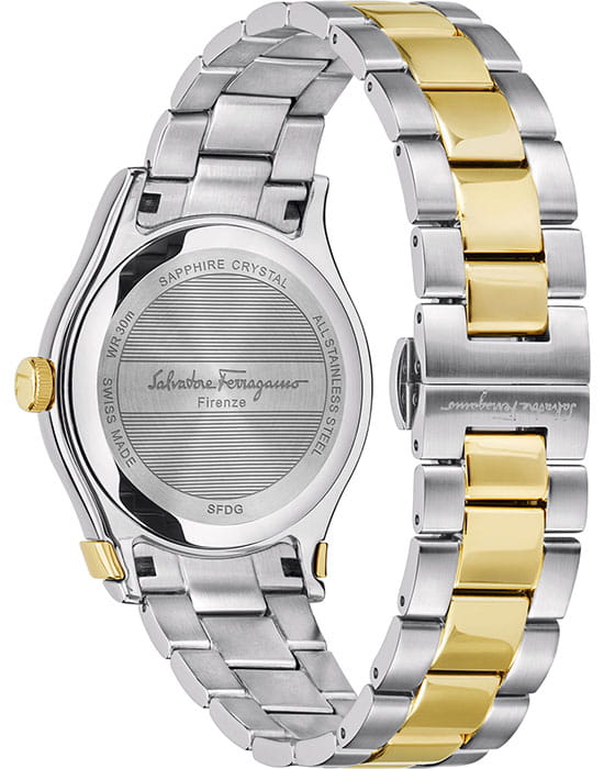 Женские швейцарские часы с сапфировым стеклом Salvatore Ferragamo SFDG00518, кварцевый механизм с высокой точностью. Сапфировое стекло устойчивое к появлению царапин, обладающее высокой прозрачностью. Класс водозащиты: 30 метров, позволит защитить корпус от случайных брызг или капель дождя. Корпус часов изготовлен из стали, разноцветного цвета.