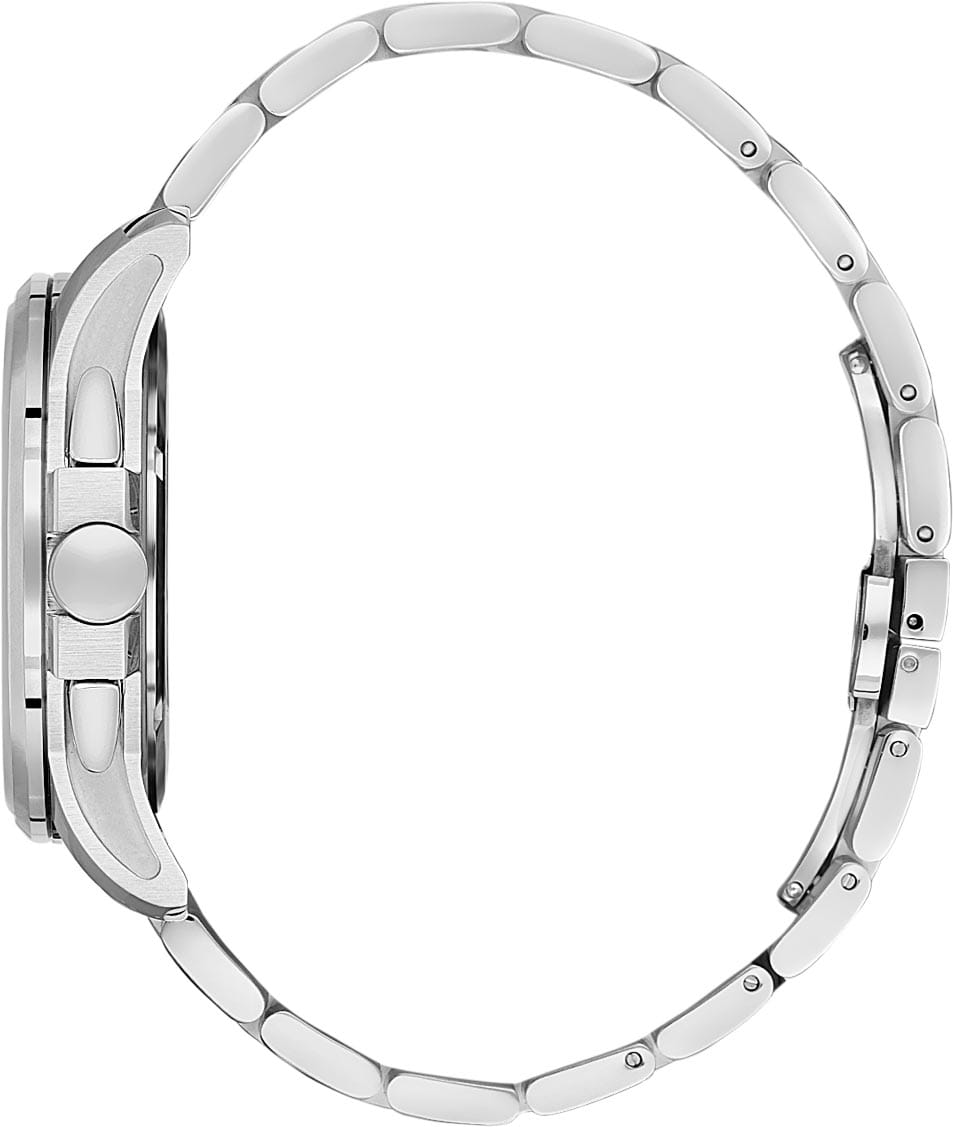 Мужские кварцевые часы Santa Barbara Polo & Racquet Club — это идеальный выбор для тех, кто ценит практичность и стиль. Корпус диаметром 43 мм выполнен из нержавеющей стали 316L с матовой и полированной отделкой. Циферблат серебристого цвета с текстурной поверхностью украшен фирменным логотипом и накладными метками в виде штрихов. Указатели дня недели и даты вынесены на отдельные субциферблаты, также присутствует индикация 24-часового формата времени. Стрелки и метки с люминесцентным покрытиемЛюминесцентное покрытиеПозволяет считывать показания времени в темноте. Производители наносят на стрелки, часовые индексы, безель или поверхность циферблата светонакопительный состав, дающий холодное свечение., обеспечивающим хорошую читаемость в темноте. Циферблат защищён минеральным стекломМинеральное стеклоМинеральное стекло представляет собой искусственно выращенный минерал кварца. Такое стекло отличается особой устойчивостью к повреждениям и царапинам. Уступает по некоторым качествам сапфировому стеклу.. Часы оснащены стальным браслетом с застёжкой «бабочка» с кнопкамиЗастёжка "бабочка"Такой вид застёжки дополняется предохранителями, помогающими избежать случайного раскрытия браслета. Обладают изящным исполнением. . Водонепроницаемость 50 м позволяет использовать часы в повседневных условиях. Идеальный выбор для тех, кто ценит классический дизайн, точность и надёжность.