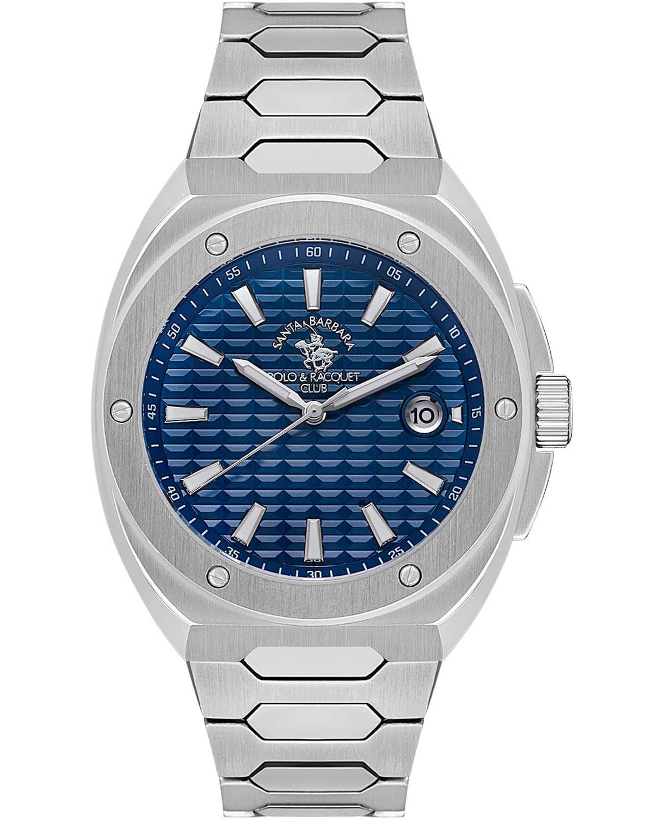 Мужские кварцевые Santa Barbara Polo & Racquet Club Legend  SB.1.10557-2 — воплощение элегантности и технического совершенства. Корпус из стали 316L серебристого цвета, диаметром 41.5 мм, что делает их устойчивыми к внешним воздействиям и придает благородный вид. Стрелки и метки с люминесцентным покрытиемЛюминесцентное покрытиеПозволяет считывать показания времени в темноте. Производители наносят на стрелки, часовые индексы, безель или поверхность циферблата светонакопительный состав, дающий холодное свечение., обеспечивающим хорошую читаемость в темноте. Циферблат защищён минеральным стекломМинеральное стеклоМинеральное стекло представляет собой искусственно выращенный минерал кварца. Такое стекло отличается особой устойчивостью к повреждениям и царапинам. Уступает по некоторым качествам сапфировому стеклу., устойчивое к царапинам и механическим повреждениям. Окошко даты находится в положении 3 часа. Браслет из стали с застёжкой «бабочка»Застёжка "бабочка"Такой вид застёжки дополняется предохранителями, помогающими избежать случайного раскрытия браслета. Обладают изящным исполнением. , обеспечивающим комфортное и безопасное ношение. Водонепроницаемость 50 метров позволит защитить корпус от случайных брызг или капель дождя. Идеальный выбор для тех, кто ценит элегантный дизайн и качество.
