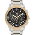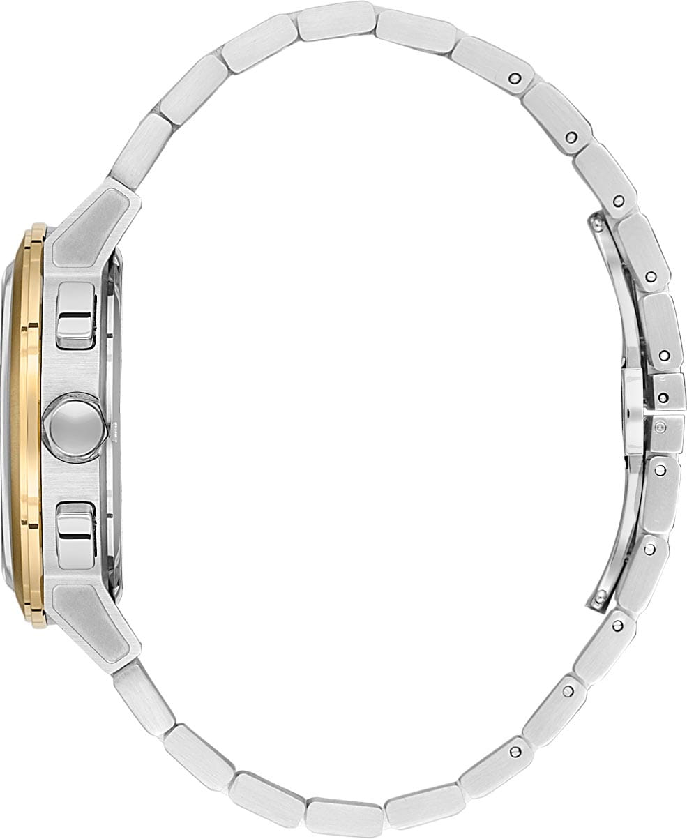 Santa Barbara Polo & Racquet Club — стильный мужской хронограф, сочетающий спортивную динамику и функциональность. Крупный корпус выполнен из нержавеющей стали с PVD-покрытиемPVDУльтратонкое покрытие наносится в технике вакуумного напыления, сочетает в себе нитрид титана особой прочности со слоем золота или оксида хрома. Несёт в себе декоративную или защитную функцию. и гармонично дополнен браслетом с PVD-покрытиемPVDУльтратонкое покрытие наносится в технике вакуумного напыления, сочетает в себе нитрид титана особой прочности со слоем золота или оксида хрома. Несёт в себе декоративную или защитную функцию. на застёжке-бабочке с кнопкамиЗастёжка "бабочка"Такой вид застёжки дополняется предохранителями, помогающими избежать случайного раскрытия браслета. Обладают изящным исполнением. .