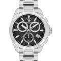 Мужские кварцевые часы-хронографХронографФункция позволяет измерять отрезки времени с особой точностью: часы, минуты, секунды. Верным признаком хронографа является наличие на циферблате 3 дополнительных окошек-счётчиков. с секундомеромСекундомерСекундоме́р — прибор, способный измерять интервалы времени с точностью до долей секунды. Santa Barbara Polo & Racquet Club SB.1.10591-2 — воплощение элегантности и технического совершенства. Корпус из нержавеющей стали серебристого цвета, диаметром 43 мм, что делает их устойчивыми к внешним воздействиям и придает благородный вид. Стрелки и метки с люминесцентным покрытиемЛюминесцентное покрытиеПозволяет считывать показания времени в темноте. Производители наносят на стрелки, часовые индексы, безель или поверхность циферблата светонакопительный состав, дающий холодное свечение., обеспечивающим хорошую читаемость в темноте. Циферблат защищён минеральным стекломМинеральное стеклоМинеральное стекло представляет собой искусственно выращенный минерал кварца. Такое стекло отличается особой устойчивостью к повреждениям и царапинам. Уступает по некоторым качествам сапфировому стеклу. устойчивое к царапинам и механическим повреждениям. 12-ти и 24-х часовой формат времени. Окошко даты находится в положении 4 часа. Фактурный циферблат с квадратными ячейками, украшен фирменным логотипом. Накладные метки в виде штрихов. Стальной браслет на раскладной застёжке с фиксаторомРаскладная застёжкаТакой тип застёжки используется только на браслетах из металла. Она никогда не раскрывается полностью, происходит разделение на 2 и более частей. Раскладывающая застёжка снизит вероятность потери часов к минимуму. обеспечивает комфортное и безопасное ношение. Водонепроницаемость 50 метров позволит защитить корпус от случайных брызг или капель дождя. Идеальный выбор для тех, кто ценит элегантный дизайн и качество.