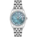 Женские кварцевые часы Santa Barbara Polo & Racquet Club — это изысканный и элегантный аксессуар. Корпус диаметром 28 мм выполнен из стали 316L. БезельБезельВнешний ободок, закрепляющий стекло. В спортивных часах так называется поворотное кольцо с делениями на циферблате, выполняет роль таймера – замеряет отрезки времени на шкале. Неподвижный безель – элемент декора. Однонаправленно вращающийся безель на дайверских часах позволяет фиксировать моменты погружения и выныривания на поверхность. рифлёный, декоративный. Циферблат перламутрового голубого цвета оформлен точками, инкрустированными кристаллами, и прямоугольными стрелками в стиле Baton. Окошко даты расположено в положении 3 часов и оснащено увеличительным стеклом (Cyclops). Циферблат защищён минеральным стекломМинеральное стеклоМинеральное стекло представляет собой искусственно выращенный минерал кварца. Такое стекло отличается особой устойчивостью к повреждениям и царапинам. Уступает по некоторым качествам сапфировому стеклу.. Часы оснащены стальным браслетом на раскладной застёжкеРаскладная застёжкаТакой тип застёжки используется только на браслетах из металла. Она никогда не раскрывается полностью, происходит разделение на 2 и более частей. Раскладывающая застёжка снизит вероятность потери часов к минимуму.. Водонепроницаемость 30 м позволяет использовать часы в повседневных условиях. Идеальный выбор для тех, кто ценит американское качество и классический дизайн.