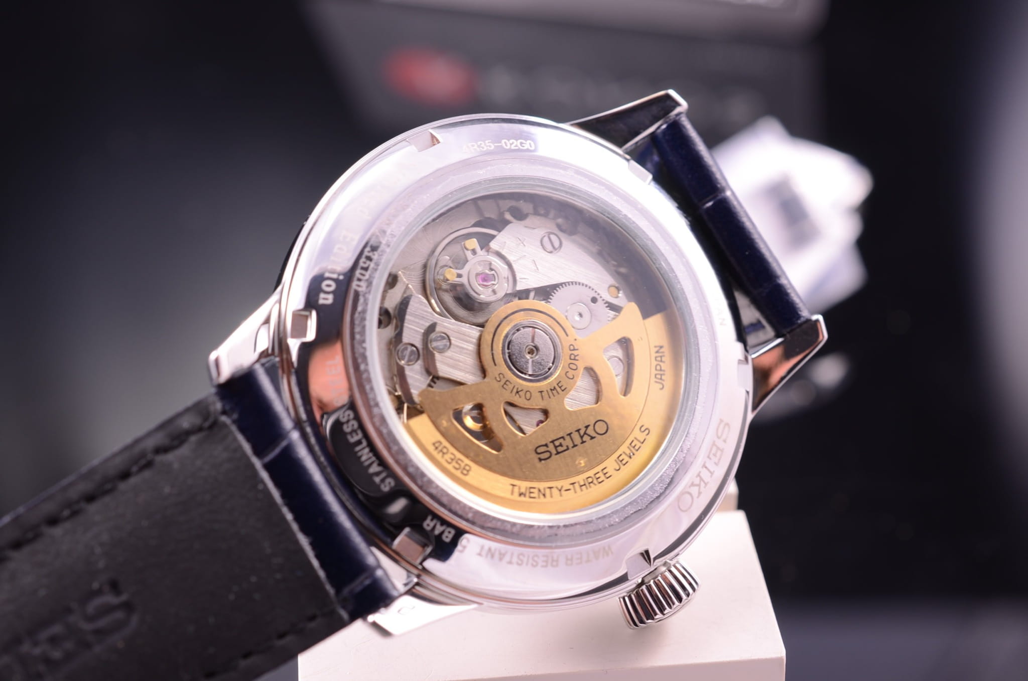 Presage. Лимитированная серия - 3500 экземпляров. В механизме 23 камня, частота 21600 полуколебаний в час. Запас хода 41 час. Возможность ручного завода. Прозрачная задняя крышка.