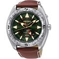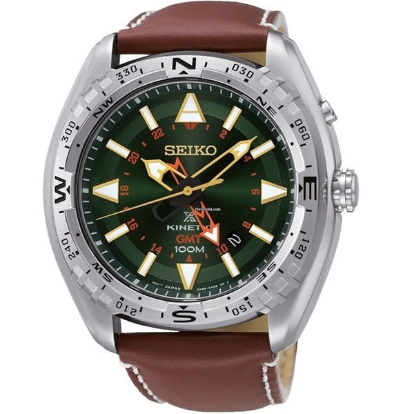 Спортивные часы с механизмом Seiko Kinetic, калибр 5M85, с функцией второго времени. Круглой формы корпус часов выполнен из высокопрочной стали с антикоррозийными свойствами. Зеленый фон циферблата и контрастные 3D элементы дизайна. Часы снабжены минеральным стеклом, устойчивым к царапинам. Водонепроницаемость 10 ATM. Часы прочно удерживаются на руке ремешком из натуральной кожи коричневого цвета.
