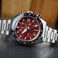 Модель SBGC275G из коллекции Grand Seiko Sport — это высокоточный дайверский хронографХронографФункция позволяет измерять отрезки времени с особой точностью: часы, минуты, секунды. Верным признаком хронографа является наличие на циферблате 3 дополнительных окошек-счётчиков., сочетающий в себе передовые технологии и японскую эстетику. Лимитированной серия. Корпус и браслет выполнены из высокопрочного титана, обеспечивая лёгкость и устойчивость к коррозии. Циферблат с матовой отделкой и крупными метками, покрытыми люминесцентным покрытиемЛюминесцентное покрытиеПозволяет считывать показания времени в темноте. Производители наносят на стрелки, часовые индексы, безель или поверхность циферблата светонакопительный состав, дающий холодное свечение., что гарантирует отличную читаемость в любых условиях. Часы оснащены механизмом Spring Drive 9R96 с запасом хода до 72 часов. Индикатор запаса хода. Центральная стрелка-указатель второго часового поясаВторой часовой поясФункция, позволяющая отображать время двух часовых поясов одновременно. GMTGMTОтображение времени второго часового пояса.Такая функция особенно актуальна для путешественников и бизнесменов,которые общаются с людьми из разных стран,теперь вы всегда будете знать,какой час у вашего партнёра или близкого человека., секундомерСекундомерСекундоме́р — прибор, способный измерять интервалы времени с точностью до долей секунды.. Ретроградный индикатор запаса хода. Диаметр корпуса составляет 44,5 мм, толщина 16.8 мм. Циферблат защищён сапфировым стекломСапфировое стеклоПрочный и надёжный материал из кристалла сапфира синтетического происхождения, характеризующийся особой твёрдостью и устойчивостью к царапинам и повреждениям. с антибликовым покрытиемАнтибликовое покрытиеСлой оксида металла в 0,13-0,3 микрон, благодаря которому стекло часов не бликует и не отражает свет. Антибликовое покрытие уменьшает отражение света в 10 раз, обеспечивая отличную читаемость показателей циферблата. на внутренней стороне. Установлена раскладная застёжка с фиксаторомРаскладная застёжкаТакой тип застёжки используется только на браслетах из металла. Она никогда не раскрывается полностью, происходит разделение на 2 и более частей. Раскладывающая застёжка снизит вероятность потери часов к минимуму. обеспечивает комфортное ношение. БезельБезельВнешний ободок, закрепляющий стекло. В спортивных часах так называется поворотное кольцо с делениями на циферблате, выполняет роль таймера – замеряет отрезки времени на шкале. Неподвижный безель – элемент декора. Однонаправленно вращающийся безель на дайверских часах позволяет фиксировать моменты погружения и выныривания на поверхность. выполнен из титана с PVD-покрытиемPVDУльтратонкое покрытие наносится в технике вакуумного напыления, сочетает в себе нитрид титана особой прочности со слоем золота или оксида хрома. Несёт в себе декоративную или защитную функцию.. Модель обладает водонепроницаемостью до 200 метров идеальным выбором для профессиональных дайверов и ценителей надёжных часов.
