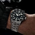 Модель SBGH291G из коллекции Grand Seiko Sport — это высокоточный дайверский инструмент, сочетающий в себе передовые технологии и японскую эстетику. Корпус и браслет выполнены из высокопрочного титана, обеспечивая лёгкость и устойчивость к коррозии. Чёрный циферблат с матовой отделкой и крупными метками, покрытыми Lumibrite, гарантирует отличную читаемость в любых условиях. Часы оснащены автоматическим механизмом Hi-Beat 9S85 с частотой 36 000 пк/ч и запасом хода до 55 часов. Циферблат защищён сапфировым стекломСапфировое стеклоПрочный и надёжный материал из кристалла сапфира синтетического происхождения, характеризующийся особой твёрдостью и устойчивостью к царапинам и повреждениям. с антибликовым покрытиемАнтибликовое покрытиеСлой оксида металла в 0,13-0,3 микрон, благодаря которому стекло часов не бликует и не отражает свет. Антибликовое покрытие уменьшает отражение света в 10 раз, обеспечивая отличную читаемость показателей циферблата. на внутренней стороне. Установлена раскладная застёжкаРаскладная застёжкаТакой тип застёжки используется только на браслетах из металла. Она никогда не раскрывается полностью, происходит разделение на 2 и более частей. Раскладывающая застёжка снизит вероятность потери часов к минимуму. с тройным сгибом и надёжным замком. Безель выполнен из титана с PVD-покрытиемPVDУльтратонкое покрытие наносится в технике вакуумного напыления, сочетает в себе нитрид титана особой прочности со слоем золота или оксида хрома. Несёт в себе декоративную или защитную функцию. и оснащён односторонним вращением для безопасности при погружениях. Модель обладает водонепроницаемостью до 200 метров и магнитной устойчивостью 4 800 A/m, что делает её идеальным выбором для профессиональных дайверов и ценителей надёжных часов.