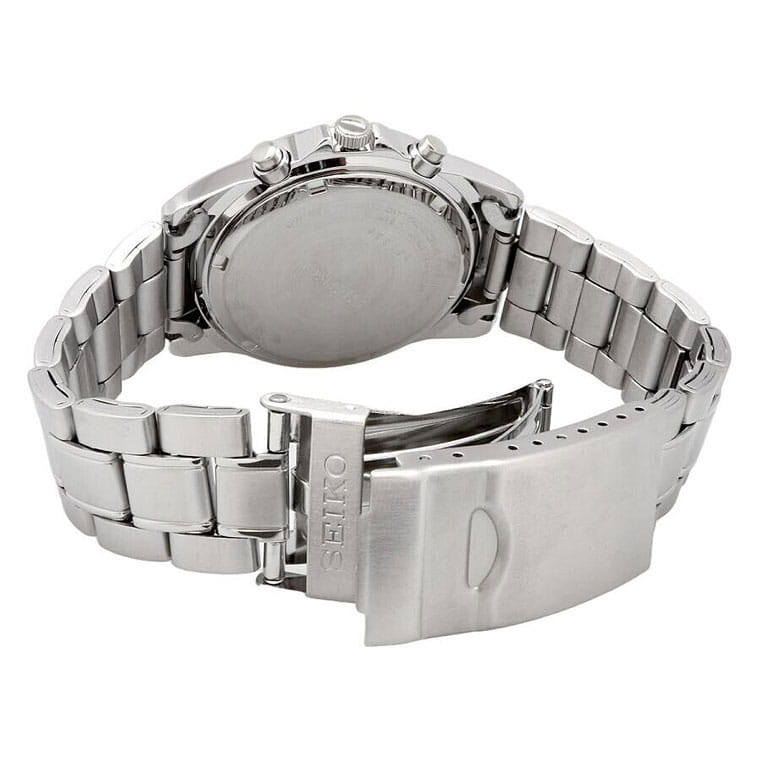 Мужские кварцевые часы Seiko SBTR009 из коллекции Spirit — это сочетание точности, функциональности и современного дизайна. Часы оснащены японским механизмом калибра 8T63 с функцией хронографаХронографФункция позволяет измерять отрезки времени с особой точностью: часы, минуты, секунды. Верным признаком хронографа является наличие на циферблате 3 дополнительных окошек-счётчиков., включающей секундомер с точностью 1/5 секунды и временем измерения до 1 часа, отображаемый центральной стрелкой. Также реализована функция тахиметраТахиметрРазмеченная шкала, располагается на ободке или безеле часов. Тахиметр позволяет рассчитать скорость на определённом участке пути, расстояние измеряется в километрах или милях.. Центральные часовая и минутная стрелки дополнены вынесенной секундной стрелкой на отдельном циферблате, окошко даты расположено между отметками 4 и 5 часов. Циферблат серебристого цвета оформлен штриховыми метками, стрелки и метки покрыты люминесцентным покрытиемЛюминесцентное покрытиеПозволяет считывать показания времени в темноте. Производители наносят на стрелки, часовые индексы, безель или поверхность циферблата светонакопительный состав, дающий холодное свечение. LumiBrite, обеспечивающим хорошую читаемость в темноте. Корпус выполнен из нержавеющей стали и защищён прочным минеральным стеклом Hardlex, устойчивым к царапинам. Браслет из нержавеющей стали фиксируется на раскладной застёжкеРаскладная застёжкаТакой тип застёжки используется только на браслетах из металла. Она никогда не раскрывается полностью, происходит разделение на 2 и более частей. Раскладывающая застёжка снизит вероятность потери часов к минимуму.. Водонепроницаемость 100 м позволяет использовать часы для плавания, ныряния и других водных видов спорта. Модель подходит как для повседневного, так и для делового образа.