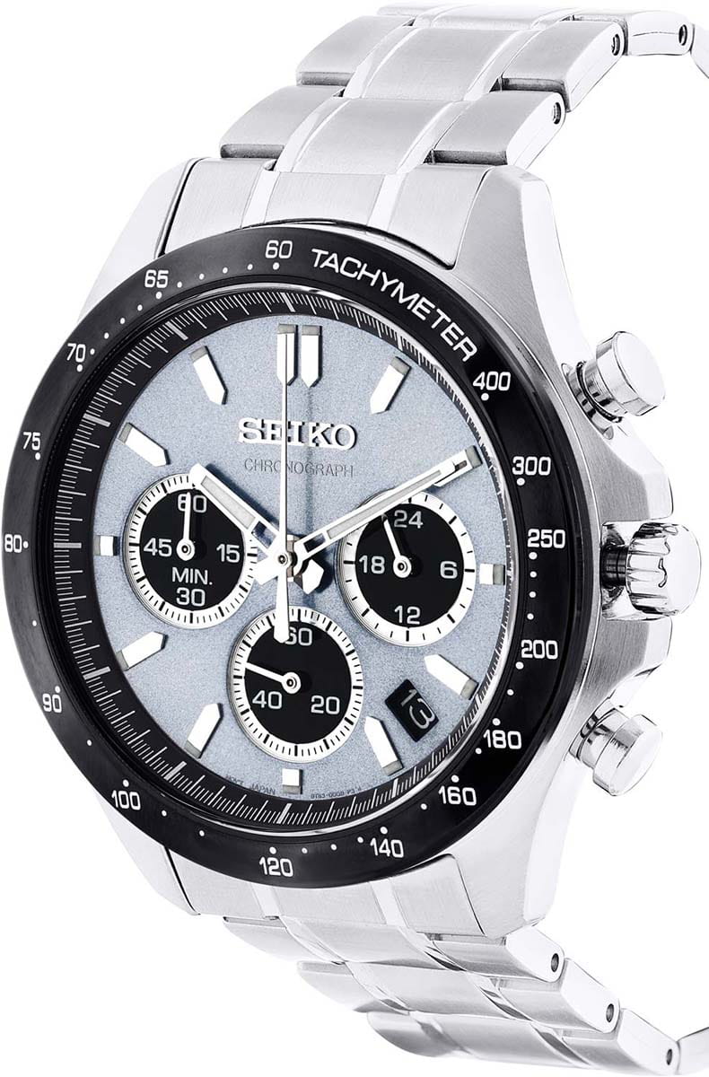 Мужские японские часы-хронографХронографФункция позволяет измерять отрезки времени с особой точностью: часы, минуты, секунды. Верным признаком хронографа является наличие на циферблате 3 дополнительных окошек-счётчиков. с секундомеромСекундомерСекундоме́р — прибор, способный измерять интервалы времени с точностью до долей секунды. Seiko Spirit Chronograph SBTR027 — это великолепное сочетание стиля и функциональности, созданное для современных искателей приключений. Минеральное стеклоМинеральное стеклоМинеральное стекло представляет собой искусственно выращенный минерал кварца. Такое стекло отличается особой устойчивостью к повреждениям и царапинам. Уступает по некоторым качествам сапфировому стеклу. с повышенной прочности Hardlex гарантирует защиту циферблата от царапин, сохраняя их безупречный вид на протяжении долгого времени. Внутри этих часов установлен кварцевый механизм, который обеспечивает высокую точность и надежность, позволяя вам всегда оставаться в курсе времени. Класс водозащиты в 100 метров позволяет вам не только плавать и нырять, но и заниматься разнообразными водными видами спорта, уверенно полагаясь на это надежное устройство, которое выдержит даже самые экстремальные условия. Корпус и браслет часов изготовлены из прочной нержавеющей стали, что укрепляет их долговечность и подчеркивает современный дизайн. Неподвижный безельБезельВнешний ободок, закрепляющий стекло. В спортивных часах так называется поворотное кольцо с делениями на циферблате, выполняет роль таймера – замеряет отрезки времени на шкале. Неподвижный безель – элемент декора. Однонаправленно вращающийся безель на дайверских часах позволяет фиксировать моменты погружения и выныривания на поверхность. с PVD-покрытиемPVDУльтратонкое покрытие наносится в технике вакуумного напыления, сочетает в себе нитрид титана особой прочности со слоем золота или оксида хрома. Несёт в себе декоративную или защитную функцию. черного цвета, диаметр 42 мм. Шкала тахиметраТахиметрРазмеченная шкала, располагается на ободке или безеле часов. Тахиметр позволяет рассчитать скорость на определённом участке пути, расстояние измеряется в километрах или милях. по внешнему краю. Удобное окошко даты в позиции между 4 и 5 часов, делает эти часы еще более практичными, позволяя быстро сверять текущую дату. Кроме того, стрелки и метки часов оснащены люминесцентным покрытиемЛюминесцентное покрытиеПозволяет считывать показания времени в темноте. Производители наносят на стрелки, часовые индексы, безель или поверхность циферблата светонакопительный состав, дающий холодное свечение., что обеспечивает отличную видимость даже в условиях низкой освещенности, поэтому вы всегда сможете узнать время, независимо от окружающей среды. Стальной браслет на раскладной застёжкеРаскладная застёжкаТакой тип застёжки используется только на браслетах из металла. Она никогда не раскрывается полностью, происходит разделение на 2 и более частей. Раскладывающая застёжка снизит вероятность потери часов к минимуму. обеспечивает комфорт и удобство в использовании, добавляя завершающий штрих к этому стильному и высокоэффективному аксессуару.