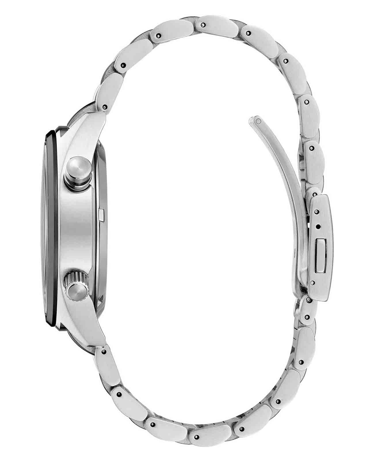 Стальной браслет с частичным PVD-покрытиемPVDУльтратонкое покрытие наносится в технике вакуумного напыления, сочетает в себе нитрид титана особой прочности со слоем золота или оксида хрома. Несёт в себе декоративную или защитную функцию. и раскладной застёжкойРаскладная застёжкаТакой тип застёжки используется только на браслетах из металла. Она никогда не раскрывается полностью, происходит разделение на 2 и более частей. Раскладывающая застёжка снизит вероятность потери часов к минимуму. обеспечивает надежную фиксацию и комфорт при ношении, позволяя вам не чувствовать дискомфорта даже в течение всего дня.