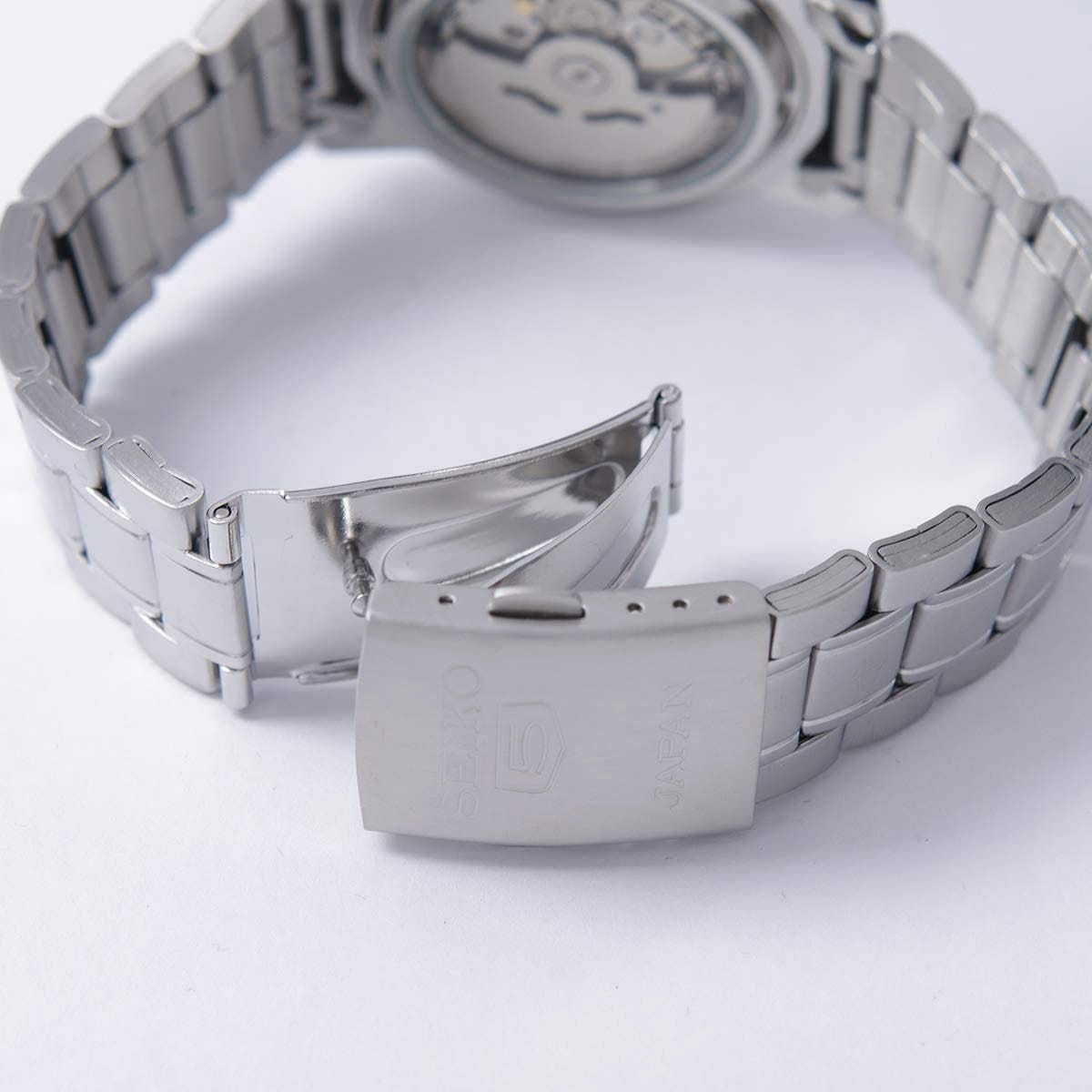 Мужские японские часы с запасом хода 45 часа Seiko 5 Regular SNKK11J1 с минеральным стекломМинеральное стеклоМинеральное стекло представляет собой искусственно выращенный минерал кварца. Такое стекло отличается особой устойчивостью к повреждениям и царапинам. Уступает по некоторым качествам сапфировому стеклу., механический механизм (автоматический калибр) с высокой точностью. Класс водозащиты: 30 метров, позволит защитить корпус от случайных брызг или капель дождя. Корпус и браслет часов изготовлен из стали. Браслет на раскладной застёжкеРаскладная застёжкаТакой тип застёжки используется только на браслетах из металла. Она никогда не раскрывается полностью, происходит разделение на 2 и более частей. Раскладывающая застёжка снизит вероятность потери часов к минимуму. с кнопками. Окошко даты и дня недели находятся в положении 3 часа. Заводная коронка находится на «4 часах». Стрелки и метки с люминесцентным покрытиемЛюминесцентное покрытиеПозволяет считывать показания времени в темноте. Производители наносят на стрелки, часовые индексы, безель или поверхность циферблата светонакопительный состав, дающий холодное свечение..