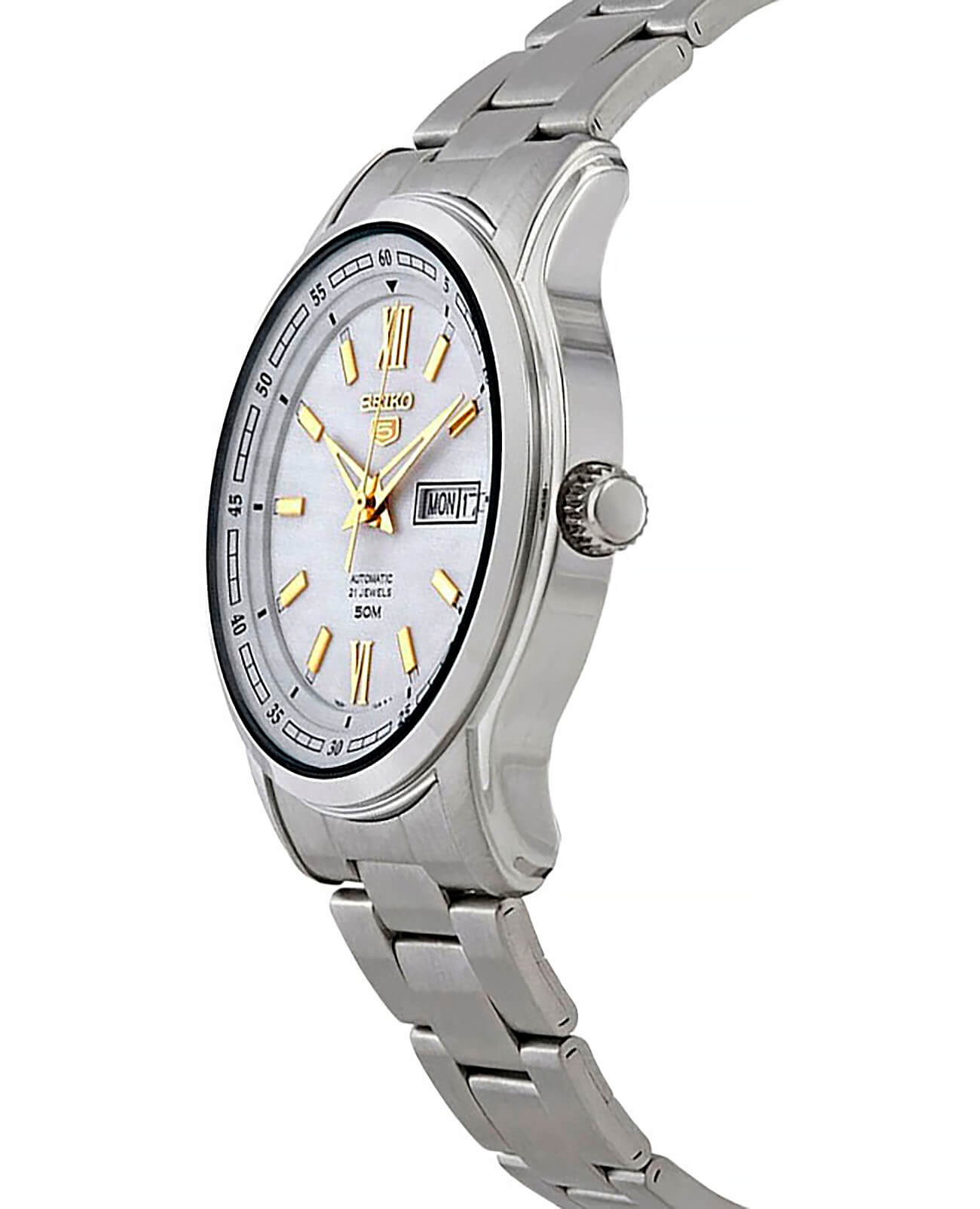 Японские мужские механические часы Seiko SNKP15K1S из коллекции 5 Regular – великолепная классика в серебристом исполнении.