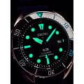 Seiko Prospex SPB325J1 — профессиональные дайверские часы, созданные с учётом строгих стандартов для подводных погружений. Крупный корпус диаметром 45 мм выполнен из нержавеющей стали с сатинированной и полированной обработкой, а массивный односторонний вращающийся безельБезельВнешний ободок, закрепляющий стекло. В спортивных часах так называется поворотное кольцо с делениями на циферблате, выполняет роль таймера – замеряет отрезки времени на шкале. Неподвижный безель – элемент декора. Однонаправленно вращающийся безель на дайверских часах позволяет фиксировать моменты погружения и выныривания на поверхность. с PVD-покрытиемPVDУльтратонкое покрытие наносится в технике вакуумного напыления, сочетает в себе нитрид титана особой прочности со слоем золота или оксида хрома. Несёт в себе декоративную или защитную функцию. с минутной шкалой облегчает контроль времени под водой. Защитную функцию выполняет сапфировое стеклоСапфировое стеклоПрочный и надёжный материал из кристалла сапфира синтетического происхождения, характеризующийся особой твёрдостью и устойчивостью к царапинам и повреждениям. с антибликовым покрытиемАнтибликовое покрытиеСлой оксида металла в 0,13-0,3 микрон, благодаря которому стекло часов не бликует и не отражает свет. Антибликовое покрытие уменьшает отражение света в 10 раз, обеспечивая отличную читаемость показателей циферблата., обеспечивающим высокую читаемость в любых условиях. Внутри установлен автоматический калибр 4R35 с возможностью ручного завода, стоп-секундой и запасом хода около 70 часа. Водозащита 200 м (20 бар) соответствует международному стандарту ISO для дайверских часов. Чёрный циферблат с крупными метками и стрелками покрыт люминесцентным покрытиемЛюминесцентное покрытиеПозволяет считывать показания времени в темноте. Производители наносят на стрелки, часовые индексы, безель или поверхность циферблата светонакопительный состав, дающий холодное свечение., что гарантирует видимость даже в кромешной темноте. Часы комплектуются прочным каучуковым ремешком с классической застёжкой, который устойчив к влаге и морской соли, делая модель надёжным инструментом для настоящего дайвинга.