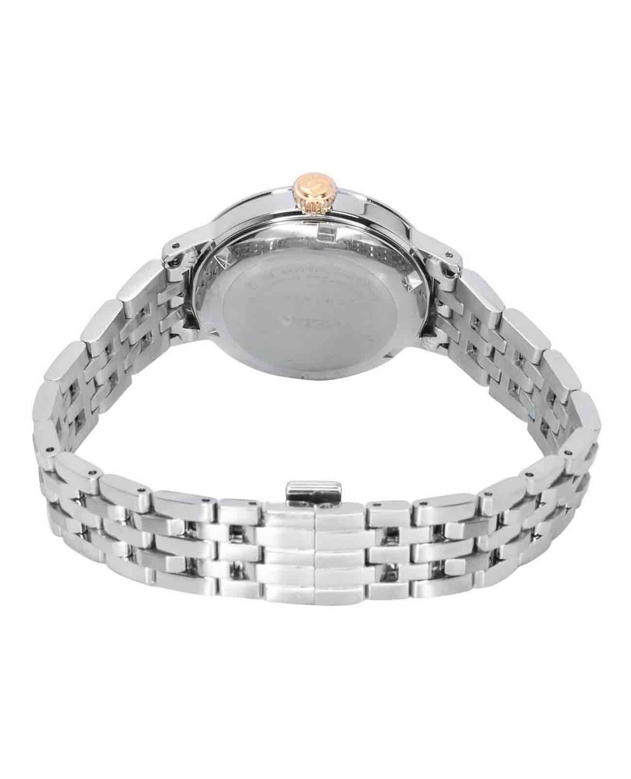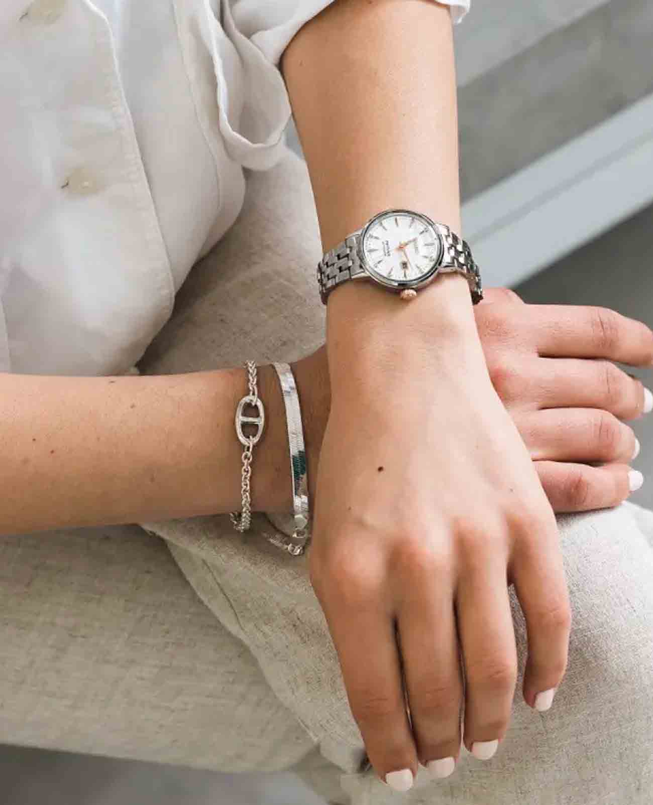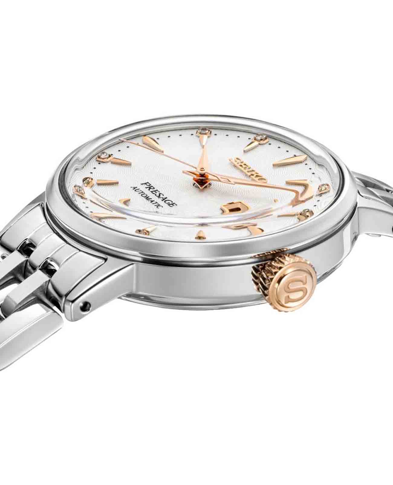 Женские японские механические часы Seiko Presage SRE009J1 — это изысканное сочетание классического дизайна и современных технологий. Циферблат этих часов защищен минеральным стекломМинеральное стеклоМинеральное стекло представляет собой искусственно выращенный минерал кварца. Такое стекло отличается особой устойчивостью к повреждениям и царапинам. Уступает по некоторым качествам сапфировому стеклу., которое обеспечивает хорошую защиту от мелких царапин и сохраняет прозрачность на протяжении долгого времени. Корпус часов выполнен из высококачественной нержавеющей стали, что придает им элегантный блеск и прочность. Класс водозащиты 50 метров защищает часы от случайных брызг и капель дождя, делая их подходящими для ежедневного использования. Механизм часов оснащен 21 камнем и работает с частотой 21 600 полуколебаний в час, обеспечивая высокую точность хода. Запас хода составляет 40 часов, что позволяет часам работать без подзавода достаточно долгое время. Также предусмотрена возможность ручного завода для дополнительного контроля над работой механизма. Центральная часовая, минутная и секундная стрелки четко показывают текущее время, а окошко даты в положении 3 часа упрощает отслеживание календарных дней. Особую роскошь часам придают 8 бриллиантов, инкрустированных в циферблат, добавляя нотку элегантности и шика.Стальной браслет на застёжка «бабочка» с кнопкамиЗастёжка "бабочка"Такой вид застёжки дополняется предохранителями, помогающими избежать случайного раскрытия браслета. Обладают изящным исполнением. обеспечивает комфортное и надежное крепление часов на запястье, дополняя общий образ изысканностью и стилем. Seiko Presage SRE009J1 — это идеальный аксессуар для женщин, ценящих красоту, качество и надежность. Эти часы станут прекрасным дополнением к любому образу, подчеркивая вкус и индивидуальность своей обладательницы.