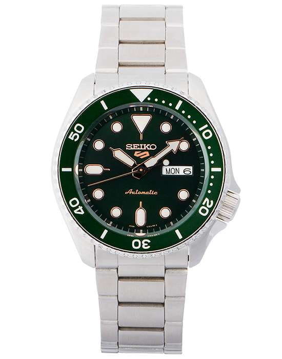 Часы Seiko 5 Sports SRPD63K1 сочетают в себе элегантный дизайн и надёжность, характерные для японского часового мастерства. Корпус диаметром 42,5 мм выполнен из нержавеющей стали, а зелёный циферблат защищён минеральным стекломМинеральное стеклоМинеральное стекло представляет собой искусственно выращенный минерал кварца. Такое стекло отличается особой устойчивостью к повреждениям и царапинам. Уступает по некоторым качествам сапфировому стеклу. с повышенной прочностью. ​​
