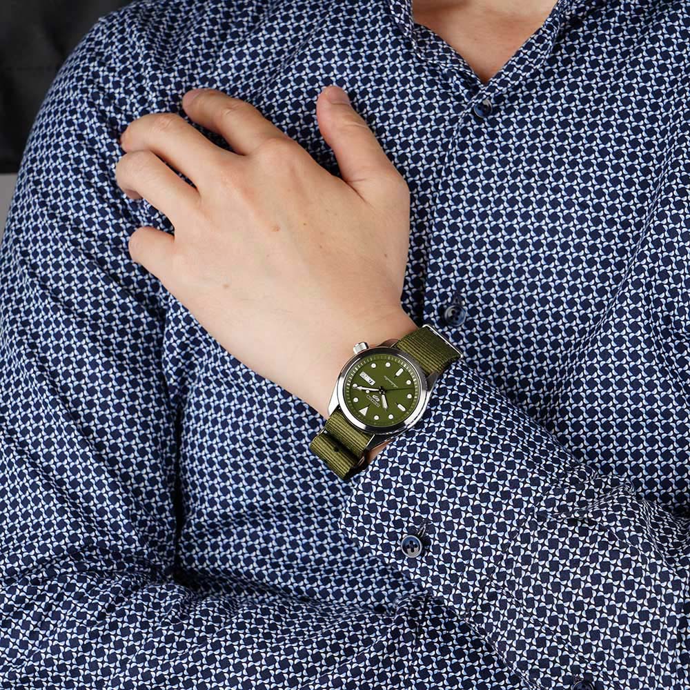 Водозащита 100 метров (10 бар) позволяет использовать часы для плавания и других водных видов спорта. Нейлоновый ремешок с раскладной застёжкойРаскладная застёжкаТакой тип застёжки используется только на браслетах из металла. Она никогда не раскрывается полностью, происходит разделение на 2 и более частей. Раскладывающая застёжка снизит вероятность потери часов к минимуму. обеспечивает комфортное ношение и надёжную фиксацию на запястье.