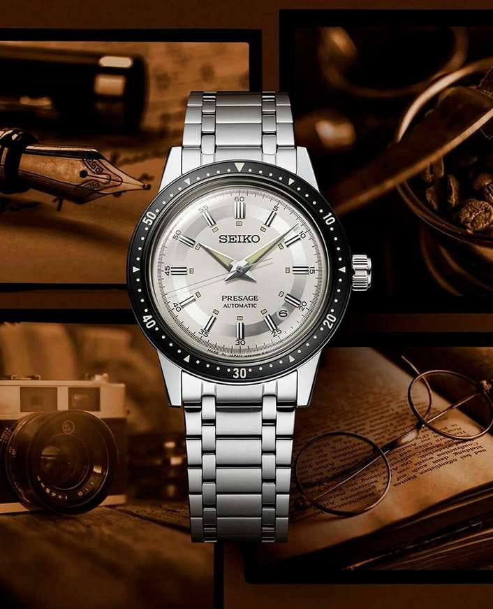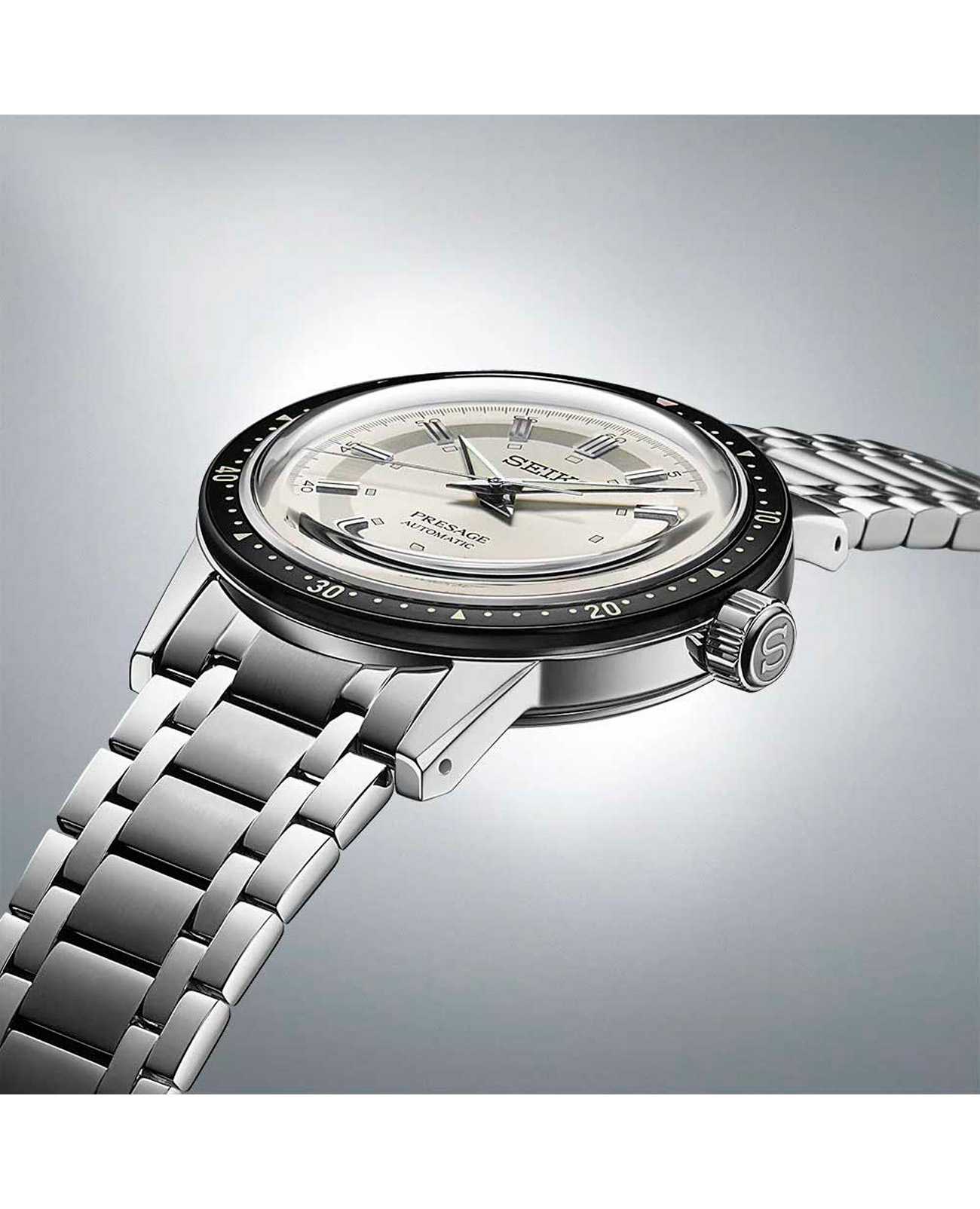 Мужские наручные часы Seiko SRPK61J1 из коллекции Presage Style 60s сочетают в себе классический дизайн и надежность современных технологий. Модель обладает круглым корпусом, изготовленным из нержавеющей стали, что обеспечивает высокую устойчивость к внешним воздействиям . Браслет также выполнен из нержавеющей стали с раскладной застежкойРаскладной замокДанный вариант застежки используется только на часах с металлическим браслетом. Отличительная особенность такого крепления в том, что длина браслета становится универсальной и вы можете самостоятельно отрегулировать нужный вам размер – застежка просто двигается по браслету часов., гарантирующей комфортное ношение .  БезельБезельВнешний ободок, закрепляющий стекло. В спортивных часах так называется поворотное кольцо с делениями на циферблате, выполняет роль таймера – замеряет отрезки времени на шкале. Неподвижный безель – элемент декора. Однонаправленно вращающийся безель на дайверских часах позволяет фиксировать моменты погружения и выныривания на поверхность. с PVD-покрытиемPVDУльтратонкое покрытие наносится в технике вакуумного напыления, сочетает в себе нитрид титана особой прочности со слоем золота или оксида хрома. Несёт в себе декоративную или защитную функцию.. Циферблат часов украшен текстурой, которая подчеркивает винтажный стиль модели. Для защиты используется минеральное стеклоМинеральное стеклоМинеральное стекло представляет собой искусственно выращенный минерал кварца. Такое стекло отличается особой устойчивостью к повреждениям и царапинам. Уступает по некоторым качествам сапфировому стеклу. Hardlex Crystal, обеспечивающее прочную защиту от царапин . Часы работают на автоматическом механизме с калибром 4R35, который включает возможность ручного завода и обладает запасом хода до 41 часа . Часы также оснащены люминесцентным покрытиемЛюминесцентное покрытиеПозволяет считывать показания времени в темноте. Производители наносят на стрелки, часовые индексы, безель или поверхность циферблата светонакопительный состав, дающий холодное свечение. на стрелках и метках, обеспечивающим отличную видимость в темноте, а также имеет водонепроницаемость WR 50, что позволяет защитить корпус от случайных брызг и кратковременного контакта с водой. Вдохновленные культурой 60-х годов, эти часы демонстрируют уникальный стиль и внимание к деталям.