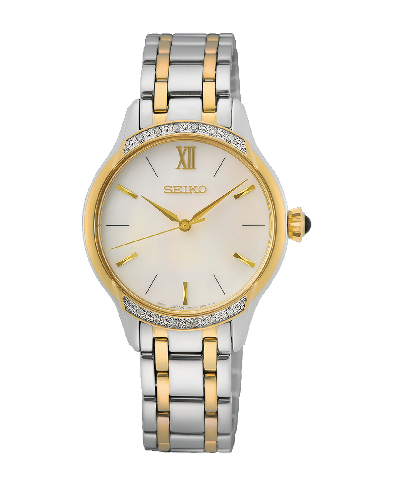Женские японские часы Seiko Weitere Modelle Quarz SRZ544P1, кварцевый механизм с высокой точностью. Сапфировое стекло устойчивое к появлению царапин, обладающее высокой прозрачностью. Класс водозащиты: 50 метров, позволит защитить корпус от случайных брызг или капель дождя. Корпус часов изготовлен из стали, золотистого цвета.