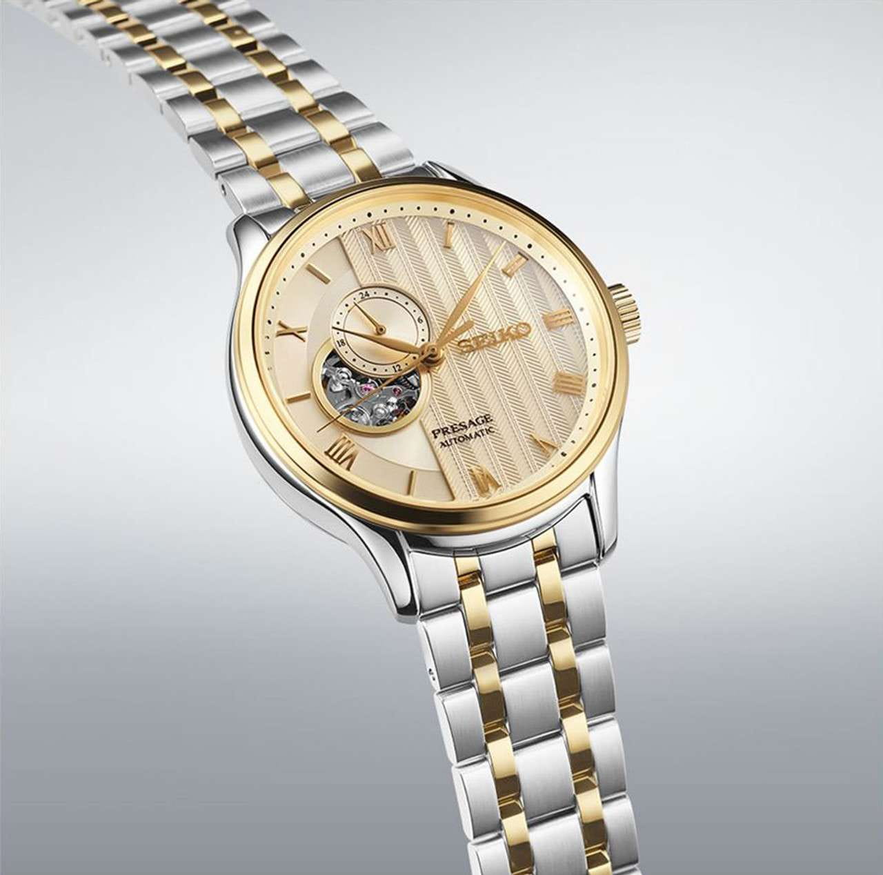 Модель Seiko SSA464J1 из коллекции Presage Japanese Garden — это элегантные автоматические часы, вдохновлённые эстетикой японских садов и философией дзен. Корпус диаметром 41,8 мм выполнен из нержавеющей стали с комбинированной полировкой и прозрачной задней крышкой. Водозащита составляет 30 метров — оптимально для повседневной носки. Фиксированный стальной безельБезельВнешний ободок, закрепляющий стекло. В спортивных часах так называется поворотное кольцо с делениями на циферблате, выполняет роль таймера – замеряет отрезки времени на шкале. Неподвижный безель – элемент декора. Однонаправленно вращающийся безель на дайверских часах позволяет фиксировать моменты погружения и выныривания на поверхность. с PVD-покрытиемPVDУльтратонкое покрытие наносится в технике вакуумного напыления, сочетает в себе нитрид титана особой прочности со слоем золота или оксида хрома. Несёт в себе декоративную или защитную функцию. подчёркивает гармоничные формы корпуса. Циферблат насыщенного цвета с тонкой текстурой напоминает волны гравия в японском саду. Открытое окно «open heart» на 9 часах позволяет наблюдать за работой механизма. В верхней части расположен индикатор запаса ходаШагомерШагоме́р или педо́метр — измерительный прибор для подсчёта количества сделанных шагов (или пар шагов) при ходьбе или беге.. Циферблат защищён двойным выпуклым сапфировым стекломСапфировое стеклоПрочный и надёжный материал из кристалла сапфира синтетического происхождения, характеризующийся особой твёрдостью и устойчивостью к царапинам и повреждениям. с внутренним антибликовым покрытиемАнтибликовое покрытиеСлой оксида металла в 0,13-0,3 микрон, благодаря которому стекло часов не бликует и не отражает свет. Антибликовое покрытие уменьшает отражение света в 10 раз, обеспечивая отличную читаемость показателей циферблата., устойчивым к царапинам и бликам. Внутри установлен автоматический калибр Seiko 4R39 с ручным подзаводом, функцией остановки секундной стрелки и запасом хода до 41 часа. Браслет выполнен из нержавеющей стали и оснащён удобной застёжкой «бабочка» с кнопкамиЗастёжка "бабочка"Такой вид застёжки дополняется предохранителями, помогающими избежать случайного раскрытия браслета. Обладают изящным исполнением. . Seiko — это стильное и сбалансированное решение для ценителей классики с японским характером, где сочетаются глубокий дизайн и надёжная механика.