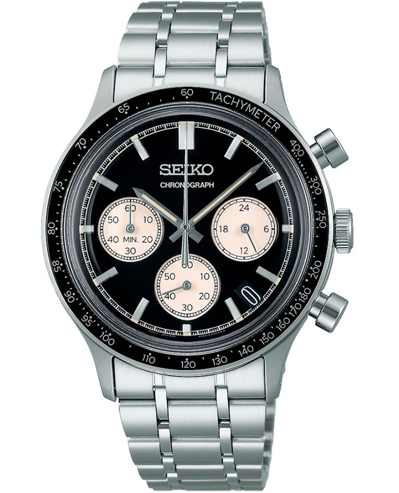 Мужские японские часы Seiko Discover More SSB479P1 c хронографомХронографФункция позволяет измерять отрезки времени с особой точностью: часы, минуты, секунды. Верным признаком хронографа является наличие на циферблате 3 дополнительных окошек-счётчиков., кварцевый механизм с высокой точностью. Минеральное стеклоМинеральное стеклоМинеральное стекло представляет собой искусственно выращенный минерал кварца. Такое стекло отличается особой устойчивостью к повреждениям и царапинам. Уступает по некоторым качествам сапфировому стеклу., устойчивое к появлению царапин, обладающее высокой прозрачностью. Класс водозащиты: 50 метров, позволит плавать, нырять и заниматься другими водными видами спорта. Корпус и браслет часов изготовлен из стали. Неподвижный безельБезельВнешний ободок, закрепляющий стекло. В спортивных часах так называется поворотное кольцо с делениями на циферблате, выполняет роль таймера – замеряет отрезки времени на шкале. Неподвижный безель – элемент декора. Однонаправленно вращающийся безель на дайверских часах позволяет фиксировать моменты погружения и выныривания на поверхность. со шкалой тахиметраТахиметрРазмеченная шкала, располагается на ободке или безеле часов. Тахиметр позволяет рассчитать скорость на определённом участке пути, расстояние измеряется в километрах или милях.. Стрелки и метки с люминесцентным покрытиемЛюминесцентное покрытиеПозволяет считывать показания времени в темноте. Производители наносят на стрелки, часовые индексы, безель или поверхность циферблата светонакопительный состав, дающий холодное свечение.. Браслет на раскладной застёжкеРаскладная застёжкаТакой тип застёжки используется только на браслетах из металла. Она никогда не раскрывается полностью, происходит разделение на 2 и более частей. Раскладывающая застёжка снизит вероятность потери часов к минимуму. с фиксатором. СекундомерСекундомерСекундоме́р — прибор, способный измерять интервалы времени с точностью до долей секунды.. Окошко даты находится в положении между 4 и 5 часов.