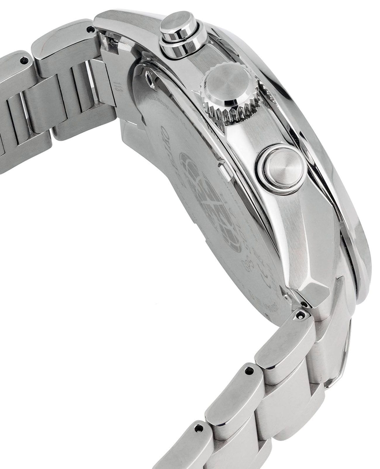 -приёмником, позволяющим определять и автоматически корректировать часовой пояс, дату, точное время. Модель получает энергию от солнечной панели, обеспечивая автономную работу часов. Японский кварцевый калибр Seiko 5X53 с точностью хода +/-15 секунд в месяц. Стекло из сапфира. Люминесцентная подсветкаЛюминесцентное покрытиеПозволяет считывать показания времени в темноте. Производители наносят на стрелки, часовые индексы, безель или поверхность циферблата светонакопительный состав, дающий холодное свечение. Lumibrite. Водостойкость 10 бар.Задняя крышка с гравировкой. Функция энергосбережения. Вечный календарьВечный календарьКлассическое часовое усложнение, представляющее собой календарь, рассчитанный на несколько лет вперёд (стандартно – до 2099 года). Определяет текущую дату, день недели, месяц. рассчитан до 28 февраля 2100 года. Мировое времяМировое время Полезное часовое усложнение, отображающее время в основных городах и известных областях по всему миру, оно связано с часовыми поясами, удобно для путешественников и бизнесменов. . Диаметр корпуса: 42,7 мм.