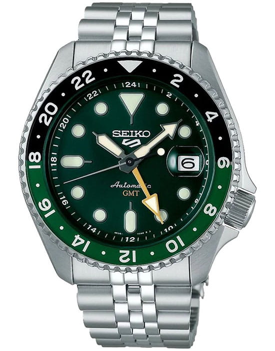 Часы Seiko 5 Sports SSK035K1 сочетают в себе элегантный дизайн и функциональность, характерные для японского часового мастерства. Корпус диаметром 42,5 мм выполнен из нержавеющей стали, а зелёный циферблат защищён минеральным стекломМинеральное стеклоМинеральное стекло представляет собой искусственно выращенный минерал кварца. Такое стекло отличается особой устойчивостью к повреждениям и царапинам. Уступает по некоторым качествам сапфировому стеклу. с увеличительной линзой над датой. Внутри часов установлен механический калибр 4R36 с автоподзаводом, обеспечивающий точность хода и запас хода до 41 часа. Функция GMTGMTОтображение времени второго часового пояса.Такая функция особенно актуальна для путешественников и бизнесменов,которые общаются с людьми из разных стран,теперь вы всегда будете знать,какой час у вашего партнёра или близкого человека. позволяет отслеживать время второго часового пояса, что особенно удобно для путешественников. Индикация даты расположена на отметке 3 часа, добавляя практичности в повседневном использовании. Водозащита 100 метров (10 бар) позволяет использовать часы для плавания и других водных видов спорта. Стальной браслет с раскладной застёжкойРаскладная застёжкаТакой тип застёжки используется только на браслетах из металла. Она никогда не раскрывается полностью, происходит разделение на 2 и более частей. Раскладывающая застёжка снизит вероятность потери часов к минимуму. обеспечивает комфортное ношение и надёжную фиксацию на запястье. Эти часы идеально подойдут для тех, кто ценит сочетание стиля и функциональности в одном аксессуаре.