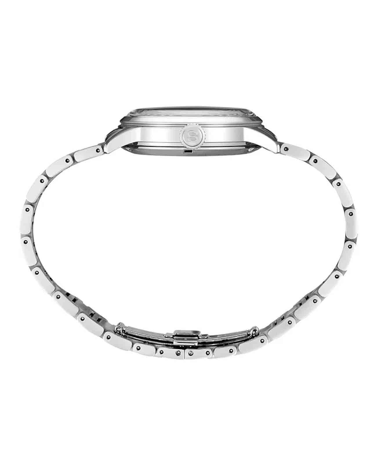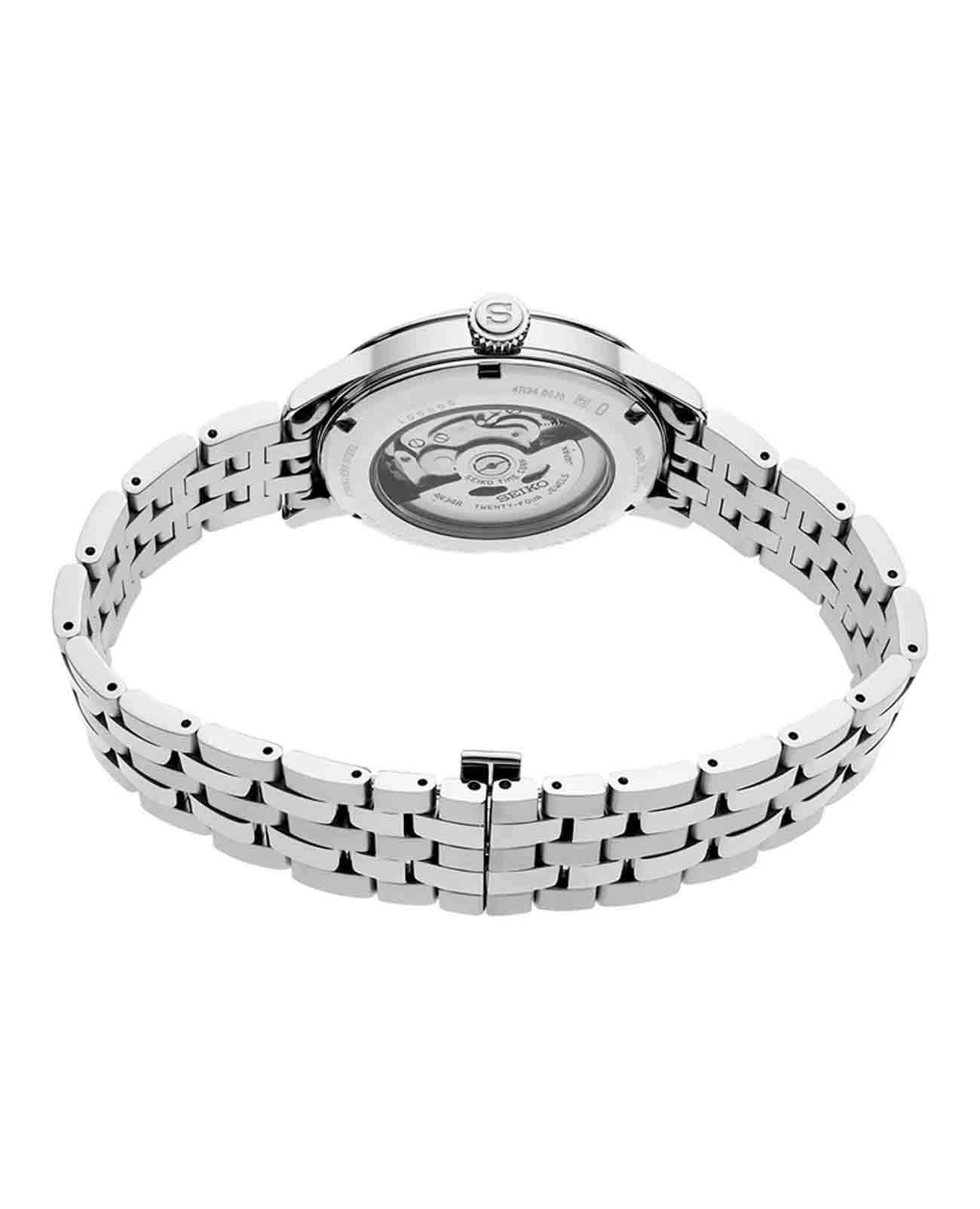 Мужские японские механические часы Seiko Presage SSK037J1 с минеральным стекломМинеральное стеклоМинеральное стекло представляет собой искусственно выращенный минерал кварца. Такое стекло отличается особой устойчивостью к повреждениям и царапинам. Уступает по некоторым качествам сапфировому стеклу. Hardlex представляют собой образец классической элегантности и технического совершенства. Корпус часов изготовлен из высококачественной стали, что обеспечивает их прочность и долговечность. Центральные часовая, минутная и секундная стрелки позволяют четко отслеживать текущее время. Функция остановки секундной стрелки облегчает точную настройку времени. Часы поддерживают 12/24-часовой формат времени, а также отображение второго часового пояса, что особенно полезно для путешественников или людей, работающих в разных временных зонах. Циферблат с часовыми индексами в виде штрихов и цифр создает лаконичный и строгий дизайн, облегчая чтение показаний. Окошко даты расположено в положении 3 часа, предоставляя актуальную информацию о текущем дне. Класс водозащиты 50 метров защищает часы от случайного попадания воды, таких как брызги или капли дождя.Стальной браслет с застёжкой-бабочкой с кнопкамиЗастёжка "бабочка"Такой вид застёжки дополняется предохранителями, помогающими избежать случайного раскрытия браслета. Обладают изящным исполнением. обеспечивает комфортное ношение и надежную фиксацию на запястье. Seiko Presage SSK037J1 – это сочетание традиций и инноваций, созданное для тех, кто ценит эстетику и функциональность в одном изделии.