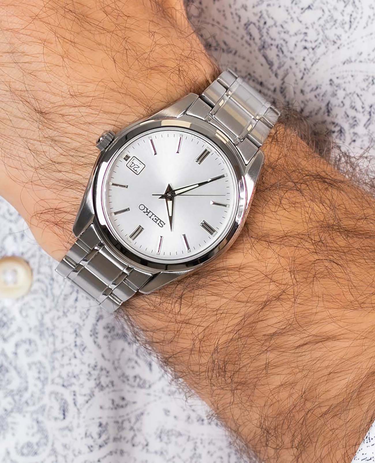 Мужские японские наручные часы Seiko Conceptual Series Dress SUR307P1, кварцевый механизм с высокой точностью. Сапфировое стеклоСапфировое стеклоПрочный и надёжный материал из кристалла сапфира синтетического происхождения, характеризующийся особой твёрдостью и устойчивостью к царапинам и повреждениям. устойчивое к появлению царапин, обладающее высокой прозрачностью. Класс водозащиты: 100 метров, позволит плавать, нырять и заниматься другими водными видами спорта. Корпус часов изготовлен из стали. Стальной браслет на раскладной застёжкеРаскладная застёжкаТакой тип застёжки используется только на браслетах из металла. Она никогда не раскрывается полностью, происходит разделение на 2 и более частей. Раскладывающая застёжка снизит вероятность потери часов к минимуму.. Стрелки с люминесцентным покрытиемЛюминесцентное покрытиеПозволяет считывать показания времени в темноте. Производители наносят на стрелки, часовые индексы, безель или поверхность циферблата светонакопительный состав, дающий холодное свечение..