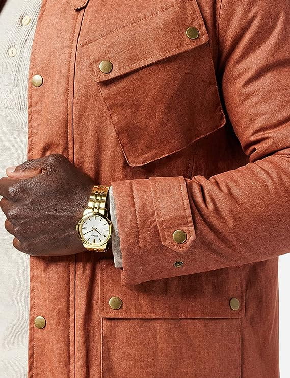 Мужские японские наручные часы Seiko Conceptual Series Dress SUR404P1, кварцевый механизм с высокой точностью. Минеральное стеклоМинеральное стеклоМинеральное стекло представляет собой искусственно выращенный минерал кварца. Такое стекло отличается особой устойчивостью к повреждениям и царапинам. Уступает по некоторым качествам сапфировому стеклу.. Класс водозащиты: 50 метров, позволит защитить корпус от случайных брызг или капель дождя. Корпус и браслет часов изготовлены из стали с PVD-покрытиемPVDУльтратонкое покрытие наносится в технике вакуумного напыления, сочетает в себе нитрид титана особой прочности со слоем золота или оксида хрома. Несёт в себе декоративную или защитную функцию.. Браслет на раскладной застёжкеРаскладная застёжкаТакой тип застёжки используется только на браслетах из металла. Она никогда не раскрывается полностью, происходит разделение на 2 и более частей. Раскладывающая застёжка снизит вероятность потери часов к минимуму. с кнопками. Окошко даты находится в положении 3 часа.