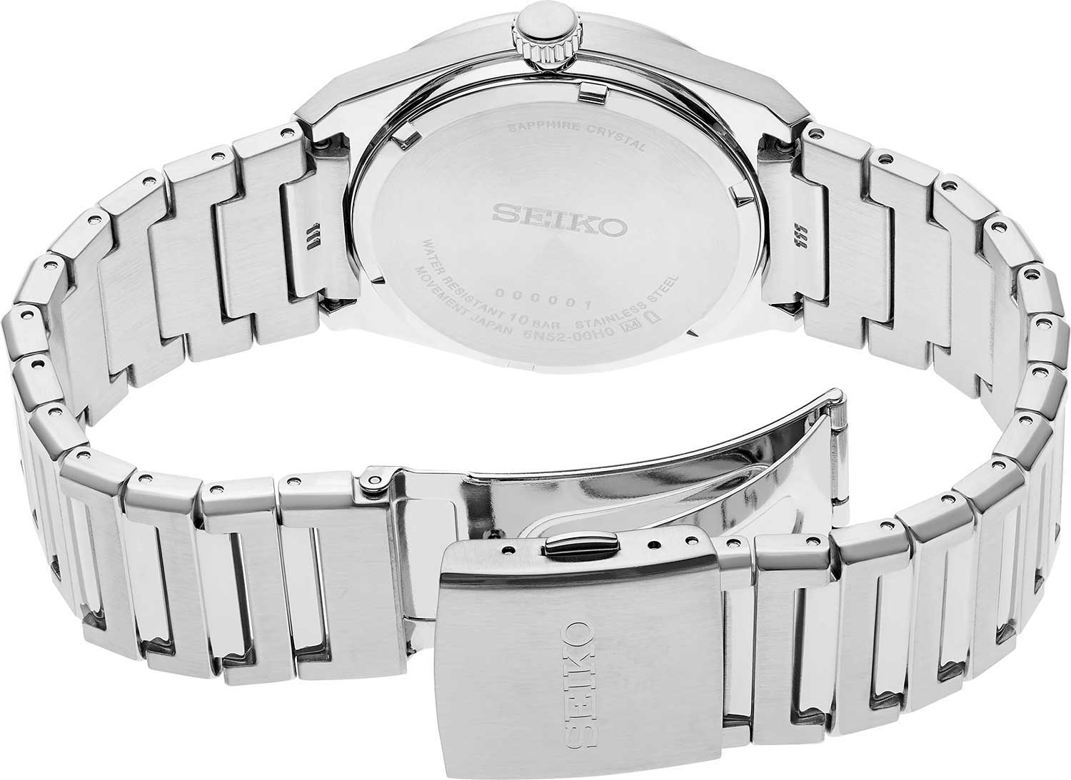 Мужские японские часы Seiko Conceptual Series Dress SUR555P1 с сапфировым стекломСапфировое стеклоПрочный и надёжный материал из кристалла сапфира синтетического происхождения, характеризующийся особой твёрдостью и устойчивостью к царапинам и повреждениям., кварцевый механизм с высокой точностью. Класс водозащиты: 100 метров, позволит плавать, нырять и заниматься другими водными видами спорта. Корпус и браслет часов изготовлен из стали. Стальной браслет на раскладной застёжкеРаскладная застёжкаТакой тип застёжки используется только на браслетах из металла. Она никогда не раскрывается полностью, происходит разделение на 2 и более частей. Раскладывающая застёжка снизит вероятность потери часов к минимуму.. Стрелки и метки с люминесцентным покрытиемЛюминесцентное покрытиеПозволяет считывать показания времени в темноте. Производители наносят на стрелки, часовые индексы, безель или поверхность циферблата светонакопительный состав, дающий холодное свечение. LumiBrite. Окошко даты находится в положении 3 часа.