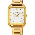 Женские японские часы Seiko Discover More SWR078P1 c кварцевым механизмом с высокой точностью с калибром 4N30. Минеральное стеклоМинеральное стеклоМинеральное стекло представляет собой искусственно выращенный минерал кварца. Такое стекло отличается особой устойчивостью к повреждениям и царапинам. Уступает по некоторым качествам сапфировому стеклу. с повышенной прочностью Hardlex устойчивое к появлению царапин, обладающее высокой прозрачностью. Водозащита до 5 ATM позволяет не снимать часы при дожде, мытье рук или случайных брызгах. Корпус и браслет изготовлены из нержавеющей стали с PVDPVDУльтратонкое покрытие наносится в технике вакуумного напыления, сочетает в себе нитрид титана особой прочности со слоем золота или оксида хрома. Несёт в себе декоративную или защитную функцию. покрытием. Браслет с раскладной застёжкойРаскладная застёжкаТакой тип застёжки используется только на браслетах из металла. Она никогда не раскрывается полностью, происходит разделение на 2 и более частей. Раскладывающая застёжка снизит вероятность потери часов к минимуму. с фиксатором. Белый циферблат с метками в виде штрихов. Seiko — это гармония изящного дизайна и технологичной надёжности, компактный и стильный выбор для повседневной классики.