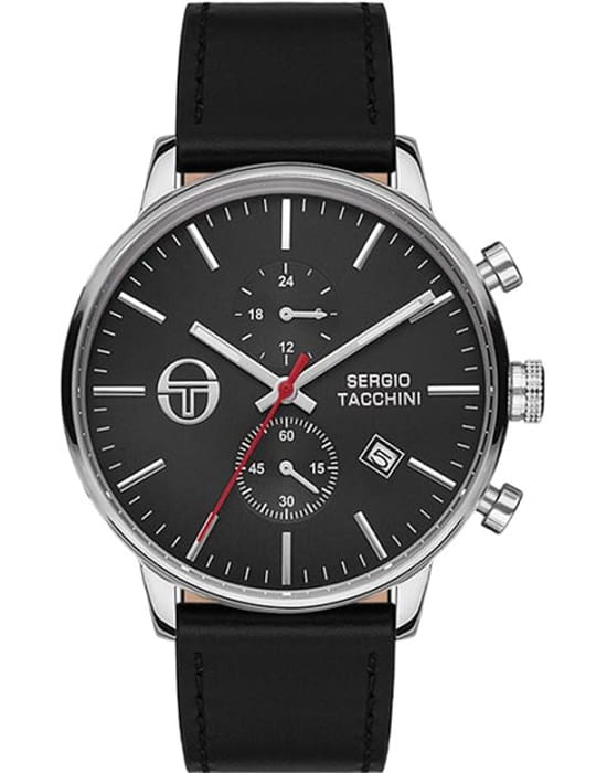 Sergio Tacchini ST.8.122.01 — мужские часы с лаконичным дизайном и спортивной функциональностью. Корпус из нержавеющей стали сочетает строгость линий с лёгкостью минимализма, а глубокий чёрный циферблат с контрастными белыми метками и стрелками обеспечивает превосходную читаемость. Модель оснащена хронографомХронографФункция позволяет измерять отрезки времени с особой точностью: часы, минуты, секунды. Верным признаком хронографа является наличие на циферблате 3 дополнительных окошек-счётчиков. с двумя счётчиками, позволяющим измерять промежутки времени, и у отметки «4 часа». Надёжное минеральное стеклоМинеральное стеклоМинеральное стекло представляет собой искусственно выращенный минерал кварца. Такое стекло отличается особой устойчивостью к повреждениям и царапинам. Уступает по некоторым качествам сапфировому стеклу. защищает циферблат от царапин, а мягкий кожаный ремешок гарантирует комфорт при длительном ношении. Водозащита 50 м подходит для повседневного использования. Sergio Tacchini — это элегантное воплощение спортивного характера в чистом итальянском стиле.
