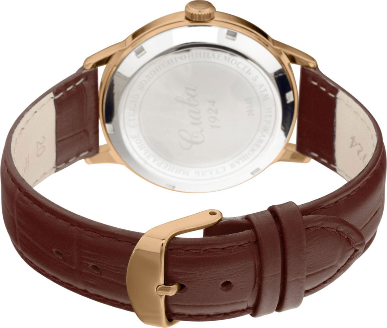 Российские механические часы с автоподзаводом Слава Премьер 1453060/8215-300. Корпус часов выполнен из стали с IP-покрытиемIP-покрытиеМетод ионного напыления. Демонстрирует повышенную устойчивость к истиранию, окислению и химическим веществам. Под воздействием высокого давления и температуры около 1500°C молекулы металла надёжно соединяются с частицами корпуса часов., что придает им долговечность и устойчивость к внешним воздействиям. Минеральное стеклоМинеральное стеклоМинеральное стекло представляет собой искусственно выращенный минерал кварца. Такое стекло отличается особой устойчивостью к повреждениям и царапинам. Уступает по некоторым качествам сапфировому стеклу. устойчиво к мелким механическим повреждениям, что гарантирует долговечность и сохранение первоначального вида.
