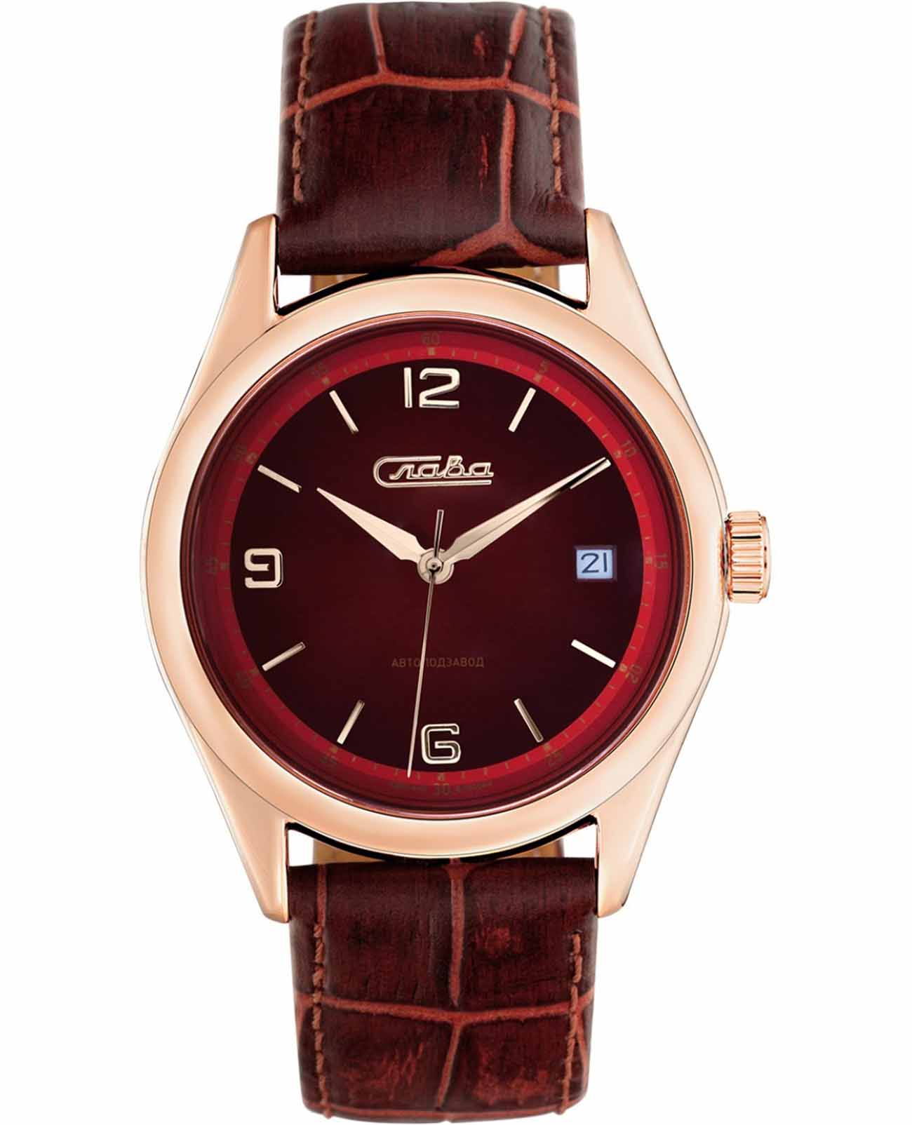 Российские механические наручные часы Слава Сенат 1493287/300-8215, которые станут идеальным аксессуаром для повседневного ношения. Эти часы сочетают в себе элегантность и практичность, предлагая безупречный стиль и надежность. Оснащенные механизмом Miyota 8215 с автоподзаводом, они обеспечивают точность и долговечность. Стальной корпус с IP-покрытиемIP-покрытиеМетод ионного напыления. Демонстрирует повышенную устойчивость к истиранию, окислению и химическим веществам. Под воздействием высокого давления и температуры около 1500°C молекулы металла надёжно соединяются с частицами корпуса часов. и сапфировым стекломСапфировое стеклоПрочный и надёжный материал из кристалла сапфира синтетического происхождения, характеризующийся особой твёрдостью и устойчивостью к царапинам и повреждениям. защищает бордовый циферблат с арабскими цифрами и метками в виде штрихов. Часы также имеют календарь с окошком даты на 3 часах и водозащиту до 50WR, что делает их надежными в различных условиях. Текстурированный кожаный бордовый ремешок с классической застежкой завершает этот изысканный образ.