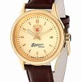 Российские механические наручные часы Слава 1859005/300-8215, которые станут идеальным аксессуаром для повседневного ношения. Эти часы сочетают в себе элегантность и практичность, предлагая безупречный стиль и надежность. Оснащенные механизмом Miyota 8215 с автоподзаводом, они обеспечивают точность и долговечность. Стальной корпус с IP-покрытиемIP-покрытиеМетод ионного напыления. Демонстрирует повышенную устойчивость к истиранию, окислению и химическим веществам. Под воздействием высокого давления и температуры около 1500°C молекулы металла надёжно соединяются с частицами корпуса часов. и сапфировым стекломСапфировое стеклоПрочный и надёжный материал из кристалла сапфира синтетического происхождения, характеризующийся особой твёрдостью и устойчивостью к царапинам и повреждениям. защищает золотистый циферблат, выполненный по технологии Sunray. Стрелки в стиле Baton и метки с люминесцентным покрытиемЛюминесцентное покрытиеПозволяет считывать показания времени в темноте. Производители наносят на стрелки, часовые индексы, безель или поверхность циферблата светонакопительный состав, дающий холодное свечение. облегчают чтение времени даже в условиях слабого освещения. На циферблате изображены герб Российской Федерации и автограф В.В. Путина. Часы также имеют календарь с окошком даты на 3 часах и водозащиту до 50WR, что делает их надежными в различных условиях. Текстурированный кожаный ремешок с классической застежкой завершает этот изысканный образ.