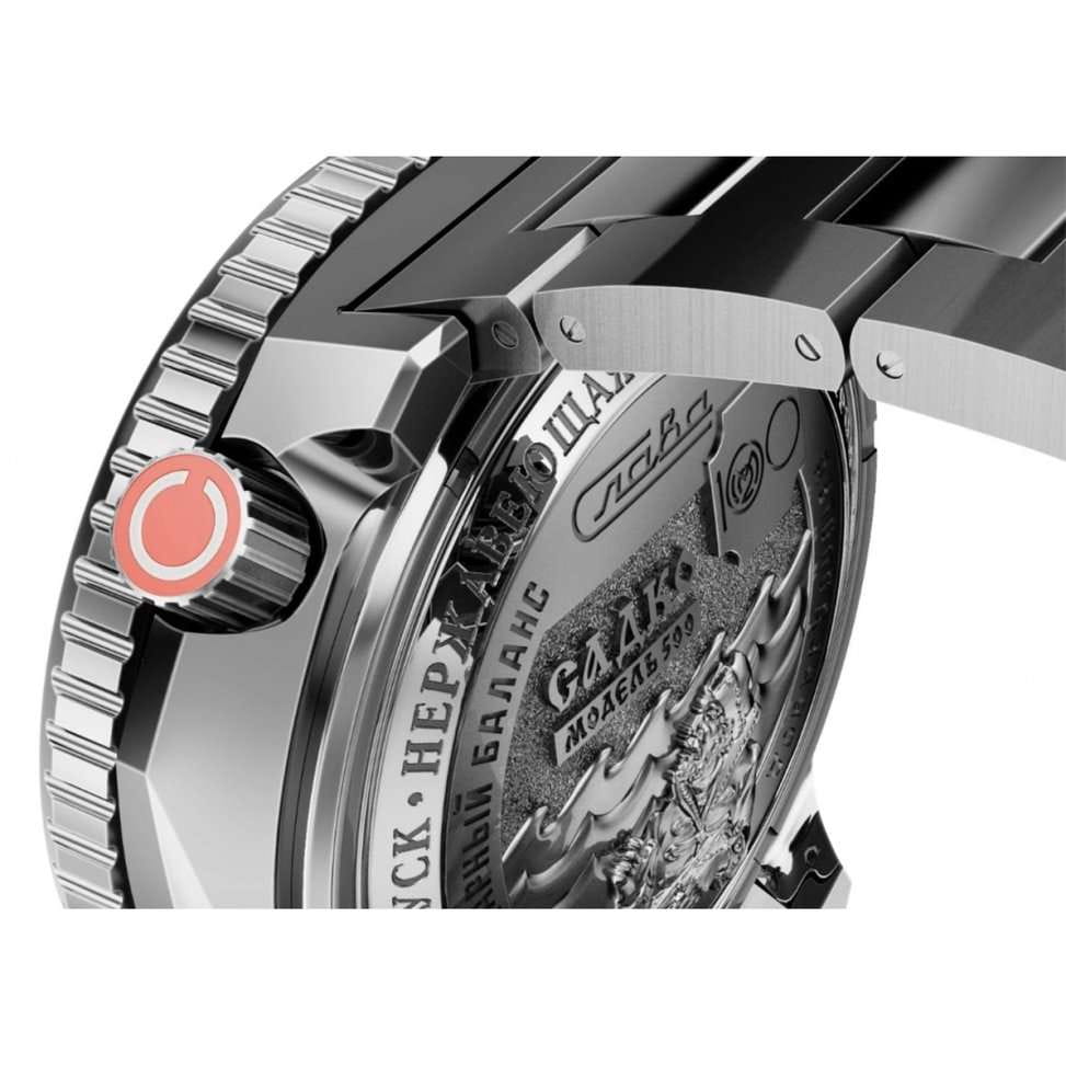 Стильные часы Слава Садко 5000170/100-2427 — станут надежным спутником как в повседневной жизни, так и при покорении морских глубин. Эти часы, созданные в России, оснащены механическим механизмом Слава 2427 с автоподзаводом, который обеспечивает точность и надежность. Корпус выполнен из высококачественной стали 316L. Поворотный безельБезельВнешний ободок, закрепляющий стекло. В спортивных часах так называется поворотное кольцо с делениями на циферблате, выполняет роль таймера – замеряет отрезки времени на шкале. Неподвижный безель – элемент декора. Однонаправленно вращающийся безель на дайверских часах позволяет фиксировать моменты погружения и выныривания на поверхность. часов с IP-покрытиемIP-покрытиеМетод ионного напыления. Демонстрирует повышенную устойчивость к истиранию, окислению и химическим веществам. Под воздействием высокого давления и температуры около 1500°C молекулы металла надёжно соединяются с частицами корпуса часов. красного и черного цвета придаёт модели особую элегантность и долговечность. Яркий красный циферблат с метками в виде штрихов надежно защищён сапфировым стекломСапфировое стеклоПрочный и надёжный материал из кристалла сапфира синтетического происхождения, характеризующийся особой твёрдостью и устойчивостью к царапинам и повреждениям., толщина которого составляет 3 мм. Заводная головка с защитой, расположенная в положении 2 часа, и литой стальной браслет с застежкой «бабочка»Застёжка "бабочка"Такой вид застёжки дополняется предохранителями, помогающими избежать случайного раскрытия браслета. Обладают изящным исполнением. обеспечивают комфорт и удобство в использовании. Эти часы имеют водозащиту 500WR, позволяя погружаться на глубину до 50 атмосфер, что делает их идеальными для дайвинга. Автоматический гелиевый клапан добавляет дополнительную надежность при подводных приключениях. Функциональность часов дополнена календарём с отображением числа и дня недели, который удобно расположен в позиции 6 часов. Кнопка быстрого перевода календаря делает настройку простой и лёгкой. Стрелки и метки обладают люминесцентным покрытиемЛюминесцентное покрытиеПозволяет считывать показания времени в темноте. Производители наносят на стрелки, часовые индексы, безель или поверхность циферблата светонакопительный состав, дающий холодное свечение., которое светится в темноте после зарядки на свету, обеспечивая отличную видимость в любых условиях. Каждый экземпляр из лимитированной серии в 500 штук уникален и имеет номер на задней крышке, украшенной объёмным изображением, выполненным методом чеканки. Механизм часов поддерживает 25 камней и работает с частотой 18000 полуколебаний в час, предлагая запас хода до 40 часов и возможность ручного завода. Противоударное устройство оси баланса добавляет уверенности в их долговечности. Эти часы — идеальный выбор для тех, кто ценит стиль, надежность и функциональность в одном аксессуаре.