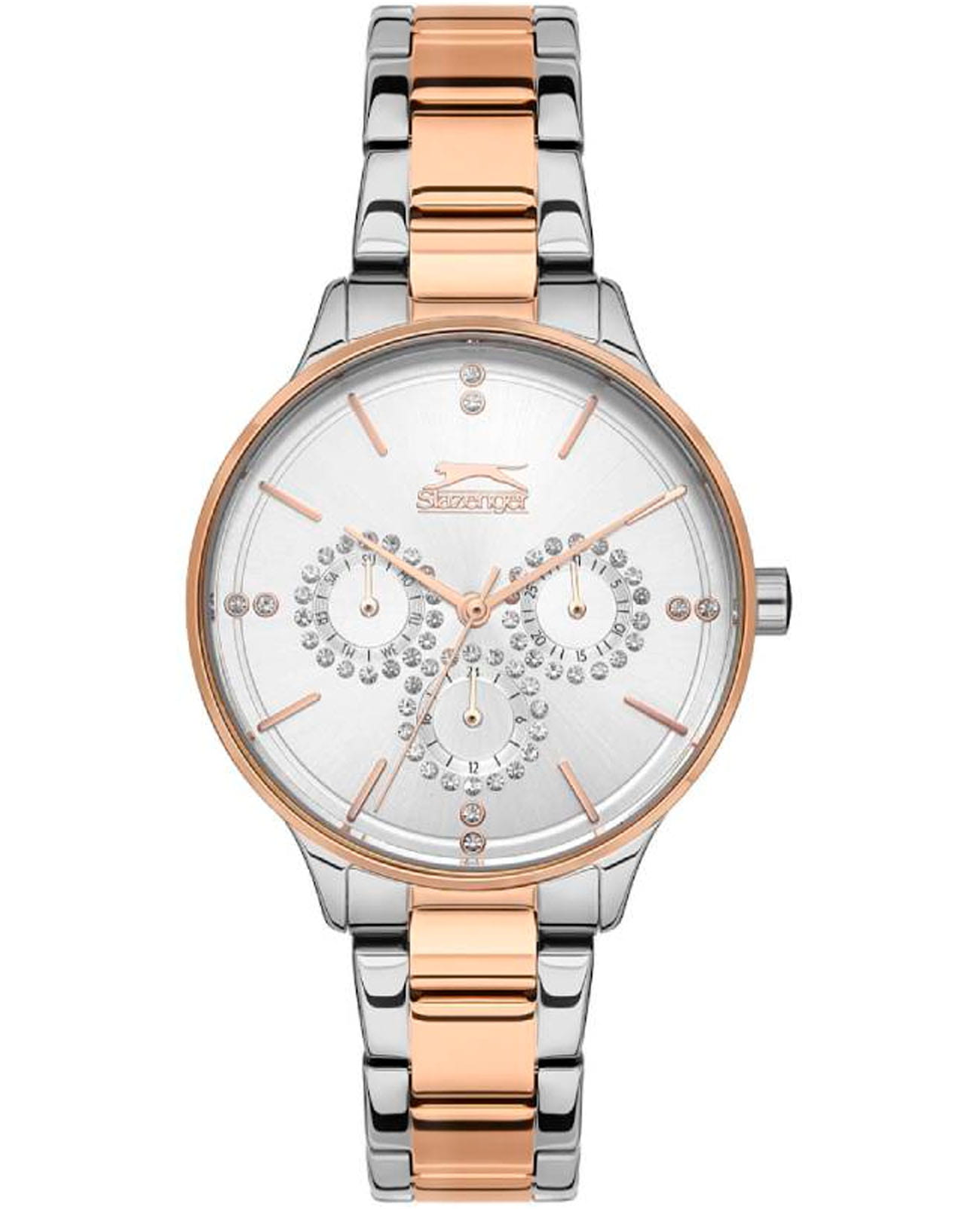 Женские наручные часы Slazenger SL.09.2019.4.03 из коллекции Весна-лето 2025 сочетают в себе элегантность и функциональность современных технологий. Модель обладает круглым корпусом диаметром 36 мм, изготовленным из нержавеющей стали, что обеспечивает высокую устойчивость к внешним воздействиям. Браслет выполнен из суперметалла с частичным IP-покрытиемIP-покрытиеМетод ионного напыления. Демонстрирует повышенную устойчивость к истиранию, окислению и химическим веществам. Под воздействием высокого давления и температуры около 1500°C молекулы металла надёжно соединяются с частицами корпуса часов. розовым и серебристым оттенком, оснащен раскладной застежкойРаскладной замокДанный вариант застежки используется только на часах с металлическим браслетом. Отличительная особенность такого крепления в том, что длина браслета становится универсальной и вы можете самостоятельно отрегулировать нужный вам размер – застежка просто двигается по браслету часов., гарантирующей комфортное ношение и безопасность. Серебристый циферблат украшен малыми циферблатами, которые отображают дату, день недели и текущее время в 24-часовом формате. Для защиты используется минеральное стеклоМинеральное стеклоМинеральное стекло представляет собой искусственно выращенный минерал кварца. Такое стекло отличается особой устойчивостью к повреждениям и царапинам. Уступает по некоторым качествам сапфировому стеклу., обеспечивающее прочную защиту от царапин. Часы работают на кварцевом механизме, что гарантирует точное время без необходимости подзаводки. Водонепроницаемость достигает 30 метров (WR30), что позволяет использовать их при контакте с брызгами воды.
