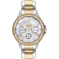 Slazenger SL.09.2021.4.04 – элегантные женские часы, сочетающие стильный дизайн и функциональность. Корпус выполнен из суперметалла, придающим модели роскошный внешний вид. Перламутровый циферблат добавляет изысканности, и защищён минеральным стекломМинеральное стеклоМинеральное стекло представляет собой искусственно выращенный минерал кварца. Такое стекло отличается особой устойчивостью к повреждениям и царапинам. Уступает по некоторым качествам сапфировому стеклу., устойчивым к царапинам. БезельБезельВнешний ободок, закрепляющий стекло. В спортивных часах так называется поворотное кольцо с делениями на циферблате, выполняет роль таймера – замеряет отрезки времени на шкале. Неподвижный безель – элемент декора. Однонаправленно вращающийся безель на дайверских часах позволяет фиксировать моменты погружения и выныривания на поверхность. с PVD-покрытиемPVDУльтратонкое покрытие наносится в технике вакуумного напыления, сочетает в себе нитрид титана особой прочности со слоем золота или оксида хрома. Несёт в себе декоративную или защитную функцию. украшен кристаллами. Часы оснащены точным кварцевым механизмом, обеспечивающим надёжное и стабильное отображение времени. Дополнительные функции включают индикацию дня недели и даты, что повышает практичность использования. Браслет из суперметалла с PVD-покрытиемPVDУльтратонкое покрытие наносится в технике вакуумного напыления, сочетает в себе нитрид титана особой прочности со слоем золота или оксида хрома. Несёт в себе декоративную или защитную функцию. оснащён раскладной застёжкойРаскладная застёжкаТакой тип застёжки используется только на браслетах из металла. Она никогда не раскрывается полностью, происходит разделение на 2 и более частей. Раскладывающая застёжка снизит вероятность потери часов к минимуму., обеспечивающей комфортное ношение и надёжную фиксацию на запястье. Водозащита до 30 метров (3 ATM) защищает часы от случайных брызг и дождя, делая их подходящими для повседневного использования.