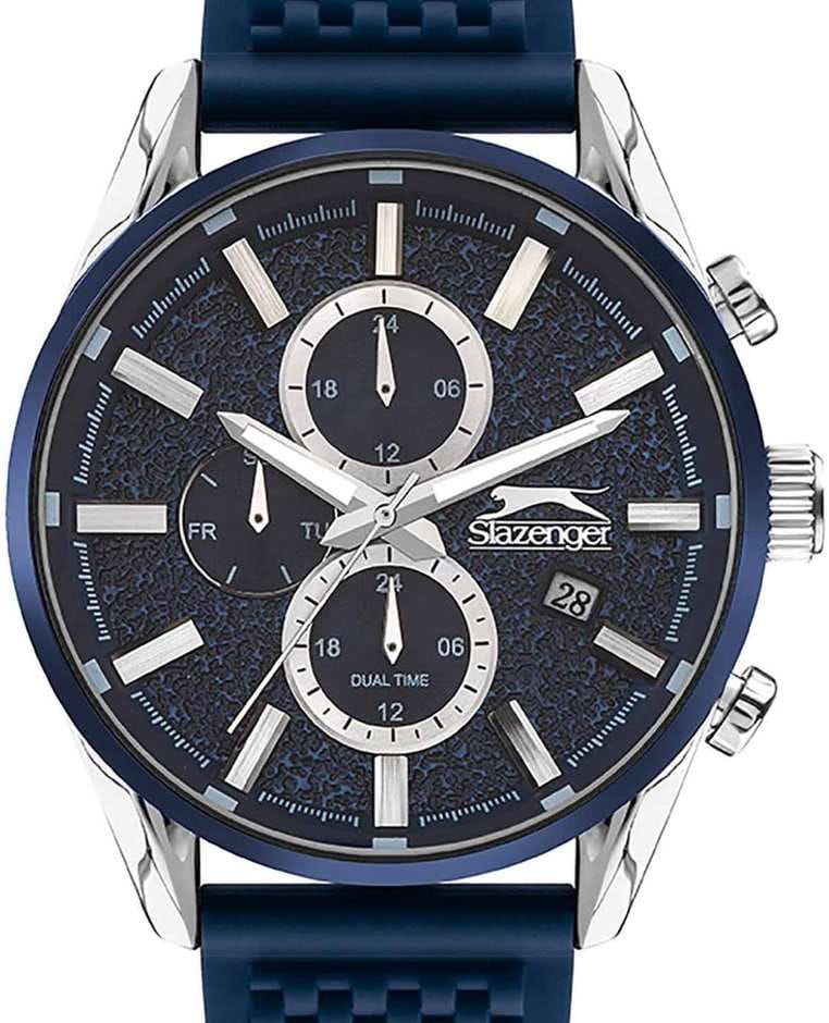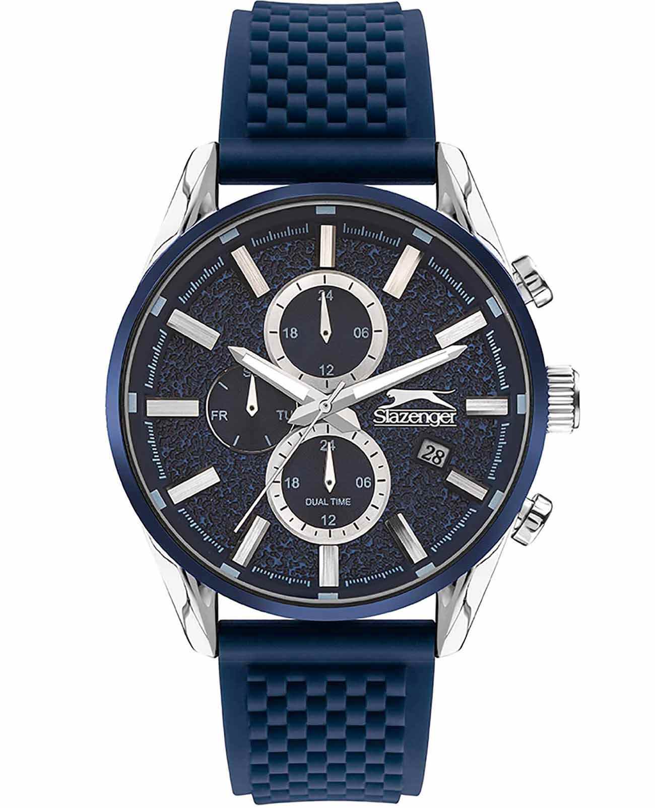 Часы Slazenger SL.09.2060.2.03 представляют собой стильное и функциональное дополнение к вашему образу. Их синий циферблат, корпус из суперметалла, безельБезельВнешний ободок, закрепляющий стекло. В спортивных часах так называется поворотное кольцо с делениями на циферблате, выполняет роль таймера – замеряет отрезки времени на шкале. Неподвижный безель – элемент декора. Однонаправленно вращающийся безель на дайверских часах позволяет фиксировать моменты погружения и выныривания на поверхность. из суперметалла с IP-покрытиемIP-покрытиеМетод ионного напыления. Демонстрирует повышенную устойчивость к истиранию, окислению и химическим веществам. Под воздействием высокого давления и температуры около 1500°C молекулы металла надёжно соединяются с частицами корпуса часов. создают элегантный и современный вид, который подчеркнет вашу индивидуальность. Эти мужские часы оснащены кварцевым механизмом, обеспечивающим точность хода. Минеральное стеклоМинеральное стеклоМинеральное стекло представляет собой искусственно выращенный минерал кварца. Такое стекло отличается особой устойчивостью к повреждениям и царапинам. Уступает по некоторым качествам сапфировому стеклу. защищает циферблат от царапин, а люминесцентное покрытиеЛюминесцентное покрытиеПозволяет считывать показания времени в темноте. Производители наносят на стрелки, часовые индексы, безель или поверхность циферблата светонакопительный состав, дающий холодное свечение. на стрелках позволяет легко считывать время даже в темноте. Функциональность часов дополнена вторым часовым поясомВторой часовой поясФункция, позволяющая отображать время двух часовых поясов одновременно., 24-часовым указателем времени, календарем даты в районе 4 часа и дня недели. Синий браслет из силикона гармонично дополняет общий дизайн. Размер корпуса составляет 44 мм в диаметре и 12 мм в толщину, что делает их удобными для повседневного ношения. А водозащита уровня 5 ATM делает их надежными спутниками даже в условиях повышенной влажности.