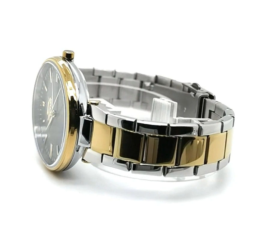 Slazenger SL.09.2122.3.06 — это элегантные женские наручные часы. Они имеют круглый циферблат с диаметром 34 мм, выполненный в золотистом цвете. Корпус часов, толщиной 9 мм, изготовлен из суперметалла с IP-покрытиемIP-покрытиеМетод ионного напыления. Демонстрирует повышенную устойчивость к истиранию, окислению и химическим веществам. Под воздействием высокого давления и температуры около 1500°C молекулы металла надёжно соединяются с частицами корпуса часов., что обеспечивает долговечность и устойчивость к коррозии. Браслет также выполнен из суперметалла с IP-покрытиемIP-покрытиеМетод ионного напыления. Демонстрирует повышенную устойчивость к истиранию, окислению и химическим веществам. Под воздействием высокого давления и температуры около 1500°C молекулы металла надёжно соединяются с частицами корпуса часов., придавая часам стильный и современный вид. Размер браслета (H1-H2): 16-14 мм. Часы оснащены кварцевым механизмом, который гарантирует точность хода. Циферблат защищен минеральным стекломМинеральное стеклоМинеральное стекло представляет собой искусственно выращенный минерал кварца. Такое стекло отличается особой устойчивостью к повреждениям и царапинам. Уступает по некоторым качествам сапфировому стеклу., устойчивым к царапинам. Модель водонепроницаема до 30 метров, что позволяет носить ее во время дождя или мытья рук. Браслет оснащен раскладной застёжкойРаскладная застёжкаТакой тип застёжки используется только на браслетах из металла. Она никогда не раскрывается полностью, происходит разделение на 2 и более частей. Раскладывающая застёжка снизит вероятность потери часов к минимуму. для удобства использования. Эти часы сочетают в себе функциональность и стильный дизайн, делая их отличным аксессуаром для повседневного использования и особых случаев.