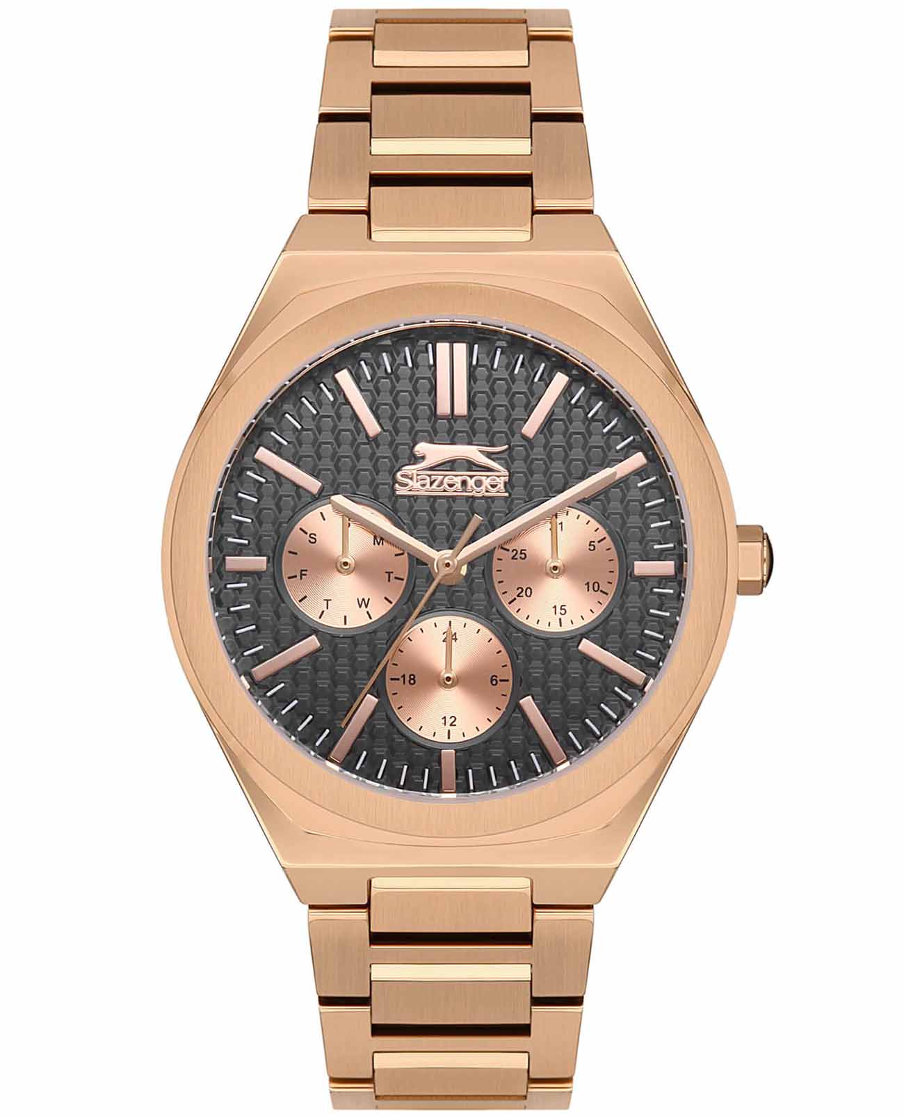 Элегантные женские часы Slazenger SL.09.2138.4.04 воплощают в себе утонченный стиль и функциональность. Их изящный круглый корпус из суперметалла с золотистым IP-покрытиемIP-покрытиеМетод ионного напыления. Демонстрирует повышенную устойчивость к истиранию, окислению и химическим веществам. Под воздействием высокого давления и температуры около 1500°C молекулы металла надёжно соединяются с частицами корпуса часов. гармонично сочетается с изысканным серым циферблатом и золотистыми малыми циферблатами, создавая неповторимый образ. Минималистичный дизайн подчеркивает чистоту линий и внимание к деталям. Циферблат защищен минеральным стекломМинеральное стеклоМинеральное стекло представляет собой искусственно выращенный минерал кварца. Такое стекло отличается особой устойчивостью к повреждениям и царапинам. Уступает по некоторым качествам сапфировому стеклу., устойчивым к царапинам. Часы имеют надежный кварцевый механизм, обеспечивающий точность хода. Часы оснащены 24-часовым указателем времени, а также дней недели и даты - на дополнительных малых циферблатах. Золотистый браслет из суперметалла IP-покрытиемIP-покрытиеМетод ионного напыления. Демонстрирует повышенную устойчивость к истиранию, окислению и химическим веществам. Под воздействием высокого давления и температуры около 1500°C молекулы металла надёжно соединяются с частицами корпуса часов. идеально облегает запястье. Модель прекрасно дополнит как деловой, так и повседневный образ, став незаменимым аксессуаром для современной женщины, ценящей качество и стиль.