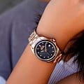Женские наручные часы Slazenger SL.09.2142.3.04 сочетают в себе элегантный дизайн и надежность современных технологий. Модель обладает корпусом и браслетом из суперметалла с IP-покрытиемIP-покрытиеМетод ионного напыления. Демонстрирует повышенную устойчивость к истиранию, окислению и химическим веществам. Под воздействием высокого давления и температуры около 1500°C молекулы металла надёжно соединяются с частицами корпуса часов., что обеспечивает высокую устойчивость к внешним воздействиям. Браслет на раскладной застёжкеРаскладная застёжкаТакой тип застёжки используется только на браслетах из металла. Она никогда не раскрывается полностью, происходит разделение на 2 и более частей. Раскладывающая застёжка снизит вероятность потери часов к минимуму., гарантирует комфортное ношение и стильный внешний вид. Циферблат черного цвета декорирован стрелками и метками в виде кристаллов, которые обеспечивают читаемость времени даже в условиях недостаточной освещенности. Для защиты используется минеральное стеклоМинеральное стеклоМинеральное стекло представляет собой искусственно выращенный минерал кварца. Такое стекло отличается особой устойчивостью к повреждениям и царапинам. Уступает по некоторым качествам сапфировому стеклу., обеспечивающее прочную защиту от царапин. Часы работают на кварцевом механизме, питаемом от батареи, что гарантирует точное время без необходимости подзаводки. Модель также оснащена функцией отображения даты, делая ее практичной для повседневного использования. Водонепроницаемость часов достигает 3 атмосфер (30M), что позволяет использовать их при мытье рук или хождении под мелким дождем, однако не рекомендуется для плавания или других водных видов спорта.