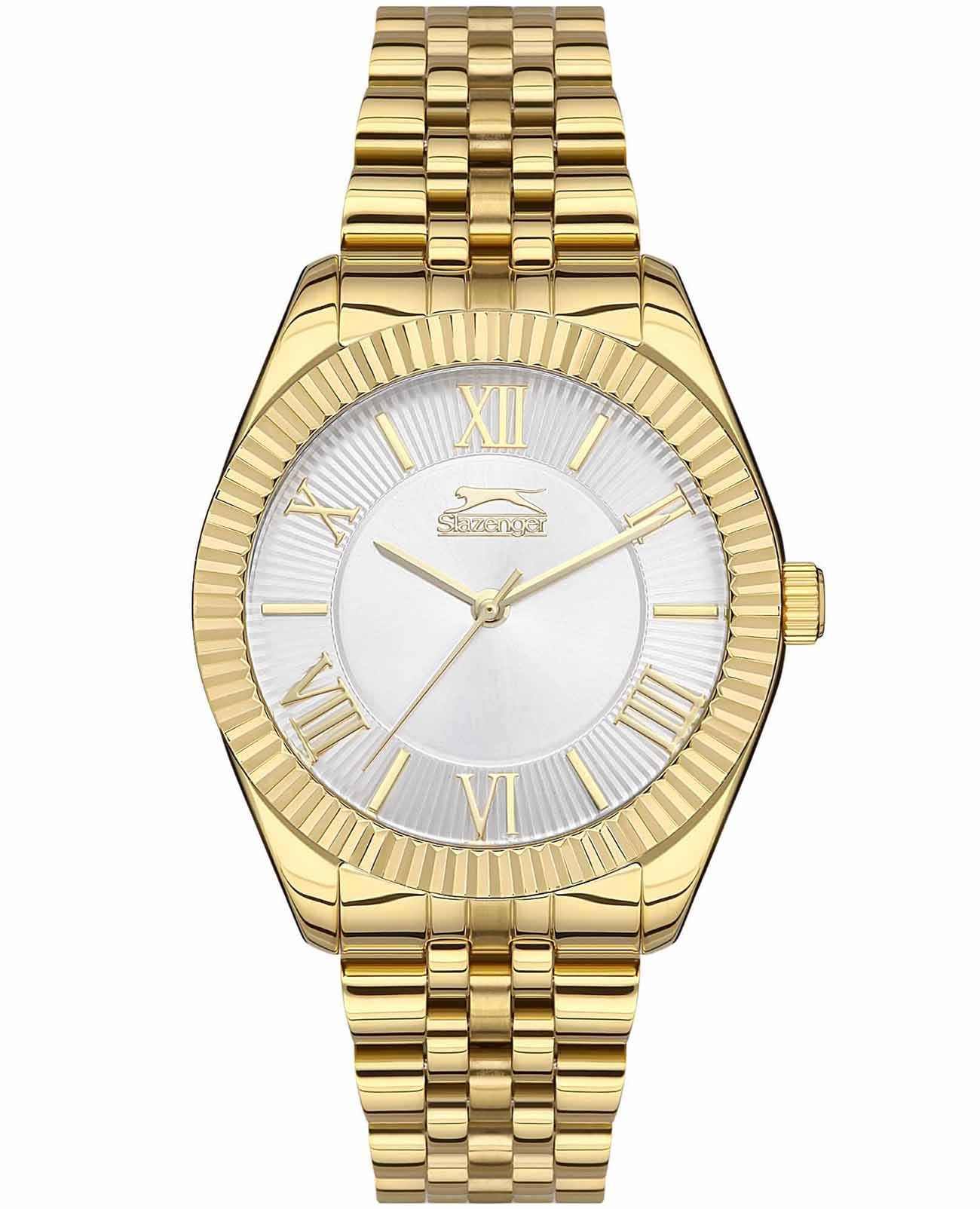 Часы Slazenger SL.09.2150.3.03 представляют собой элегантное сочетание стиля и функциональности. Эти часы отличаются высоким качеством и утонченным дизайном. Кварцевый механизм обеспечивает точность хода, а корпус диаметром 36 мм выполнен из прочного суперметалла с золотистым IP-покрытиемIP-покрытиеМетод ионного напыления. Демонстрирует повышенную устойчивость к истиранию, окислению и химическим веществам. Под воздействием высокого давления и температуры около 1500°C молекулы металла надёжно соединяются с частицами корпуса часов., что гарантирует долговечность использования. Минеральное стеклоМинеральное стеклоМинеральное стекло представляет собой искусственно выращенный минерал кварца. Такое стекло отличается особой устойчивостью к повреждениям и царапинам. Уступает по некоторым качествам сапфировому стеклу. надежно защищает циферблат от царапин и повреждений. Круглый корпус украшен рифленым безелемБезельВнешний ободок, закрепляющий стекло. В спортивных часах так называется поворотное кольцо с делениями на циферблате, выполняет роль таймера – замеряет отрезки времени на шкале. Неподвижный безель – элемент декора. Однонаправленно вращающийся безель на дайверских часах позволяет фиксировать моменты погружения и выныривания на поверхность. с золотистым IP-покрытиемIP-покрытиеМетод ионного напыления. Демонстрирует повышенную устойчивость к истиранию, окислению и химическим веществам. Под воздействием высокого давления и температуры около 1500°C молекулы металла надёжно соединяются с частицами корпуса часов., что придает часам особый стиль. Золотистый металлический браслет с IP-покрытиемIP-покрытиеМетод ионного напыления. Демонстрирует повышенную устойчивость к истиранию, окислению и химическим веществам. Под воздействием высокого давления и температуры около 1500°C молекулы металла надёжно соединяются с частицами корпуса часов. оснащен раскладной застёжкойРаскладная застёжкаТакой тип застёжки используется только на браслетах из металла. Она никогда не раскрывается полностью, происходит разделение на 2 и более частей. Раскладывающая застёжка снизит вероятность потери часов к минимуму., что обеспечивает комфортное ношение и надежную фиксацию на запястье. Общий вес часов составляет 85 грамм, что делает их легкими и удобными для повседневного использования. Уровень водозащиты WR 30 позволяет не беспокоиться о случайных попаданиях воды. Эти часы станут идеальным выбором для женщин, ценящих сочетание классического дизайна и надежности.