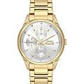Часы Slazenger SL.09.2229.4.05 — это стильная и элегантная модель, созданная для современных женщин, ценящих изысканный дизайн и функциональность. Корпус и браслет выполнены из прочного металла золотистого цвета с IP-покрытиемIP-покрытиеМетод ионного напыления. Демонстрирует повышенную устойчивость к истиранию, окислению и химическим веществам. Под воздействием высокого давления и температуры около 1500°C молекулы металла надёжно соединяются с частицами корпуса часов., что придает аксессуару особую утонченность. Серебристый циферблат украшен мерцающими кристаллами, а также оснащён дополнительными малыми циферблатами, которые отображают дату, день недели и время в 24-часовом формате. Минеральное стеклоМинеральное стеклоМинеральное стекло представляет собой искусственно выращенный минерал кварца. Такое стекло отличается особой устойчивостью к повреждениям и царапинам. Уступает по некоторым качествам сапфировому стеклу. надежно защищает часы от царапин, а водозащита уровня WR 30 позволяет не беспокоиться о случайном попадании влаги. Металлический браслет снабжён удобной раскладной застёжкойРаскладная застёжкаТакой тип застёжки используется только на браслетах из металла. Она никогда не раскрывается полностью, происходит разделение на 2 и более частей. Раскладывающая застёжка снизит вероятность потери часов к минимуму.. Диаметр корпуса составляет 36 мм, толщина — 9 мм, а вес — 82 грамма, что обеспечивает комфортное ношение в течение всего дня. Часы оснащены кварцевым механизмом.