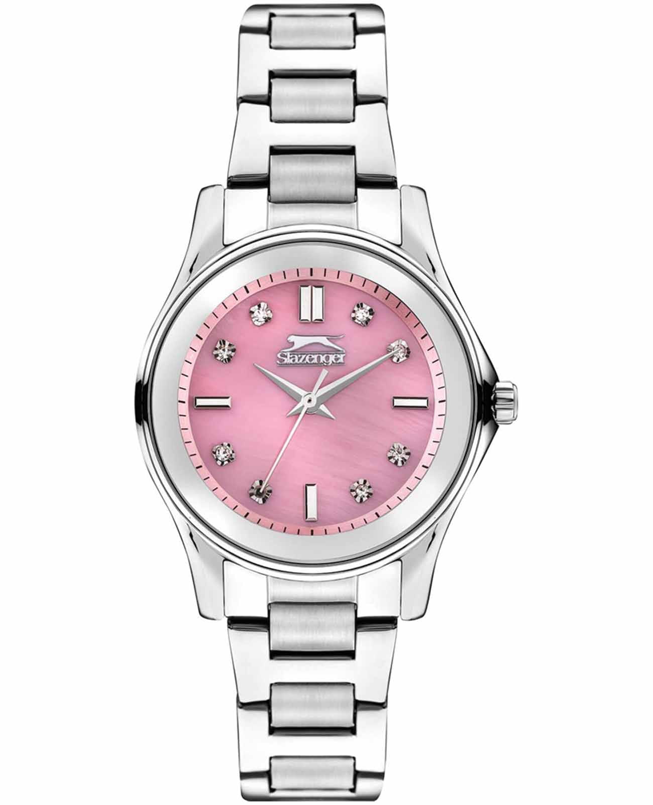 Женские наручные часы Slazenger SL.09.2235.3.08 сочетают в себе классический дизайн и надежность современных технологий. Модель обладает круглым корпусом диаметром 32 мм, изготовленным из прочного металла, что обеспечивает высокую устойчивость к внешним воздействиям. Индексы украшены фианитами. Браслет выполнен из металла с раскладной застёжкойРаскладная застёжкаТакой тип застёжки используется только на браслетах из металла. Она никогда не раскрывается полностью, происходит разделение на 2 и более частей. Раскладывающая застёжка снизит вероятность потери часов к минимуму., гарантирующей комфортное ношение и безопасность. Циферблат перламутрового розового цвета декорирован серебристыми стрелками и индексами. Для защиты используется минеральное стеклоМинеральное стеклоМинеральное стекло представляет собой искусственно выращенный минерал кварца. Такое стекло отличается особой устойчивостью к повреждениям и царапинам. Уступает по некоторым качествам сапфировому стеклу., обеспечивающее прочную защиту от царапин. Часы работают на кварцевом механизме, что гарантирует точное время без необходимости подзаводки. Водонепроницаемость часов достигает 3 атмосфер, что позволяет использовать их при мытье рук или хождении под мелким дождем, однако не рекомендуется для плавания или других водных видов спорта. Вес модели составляет 72 грамма.