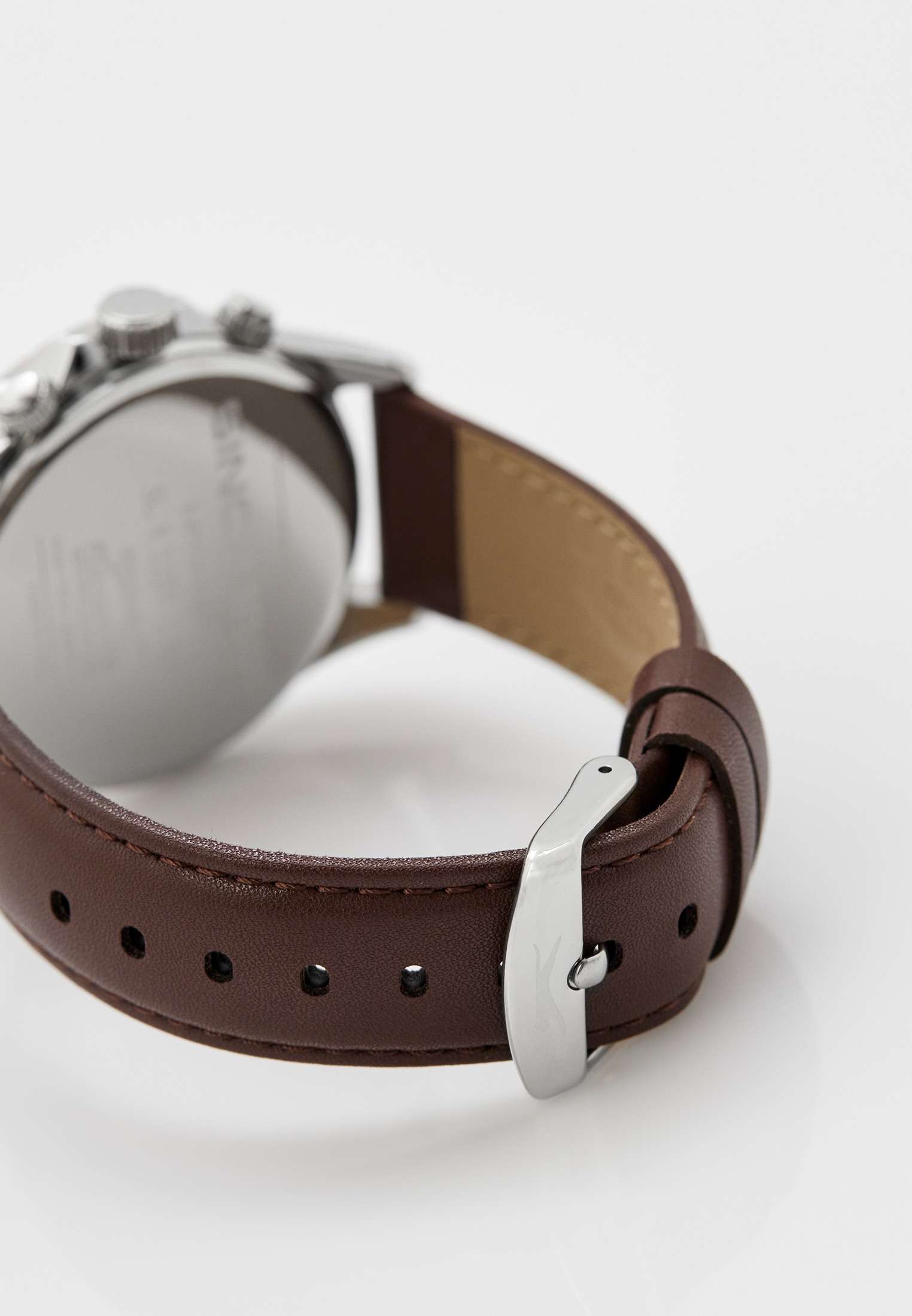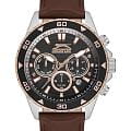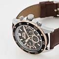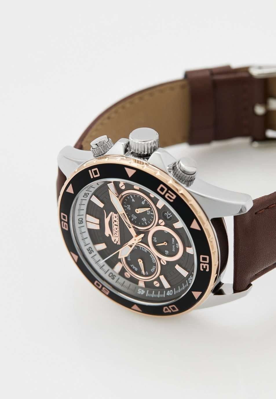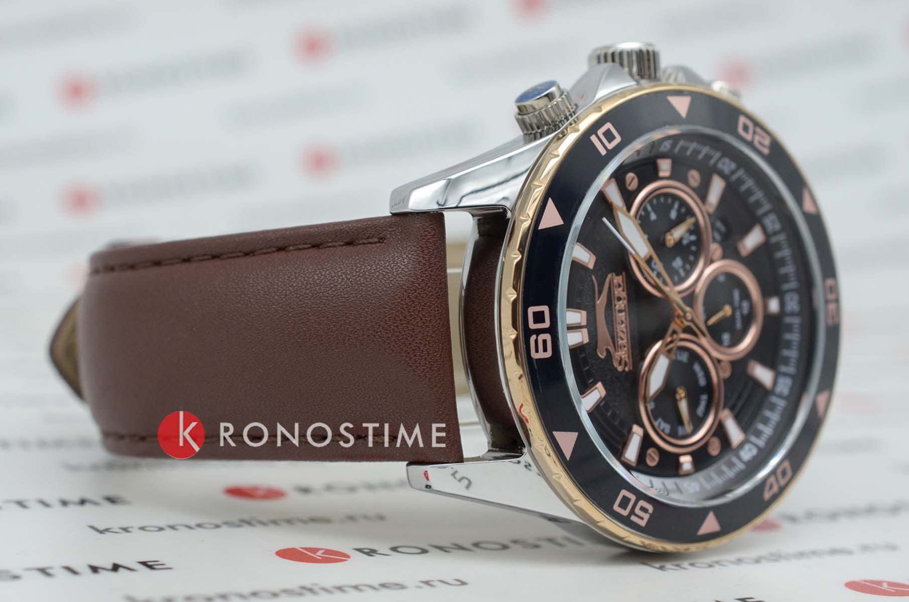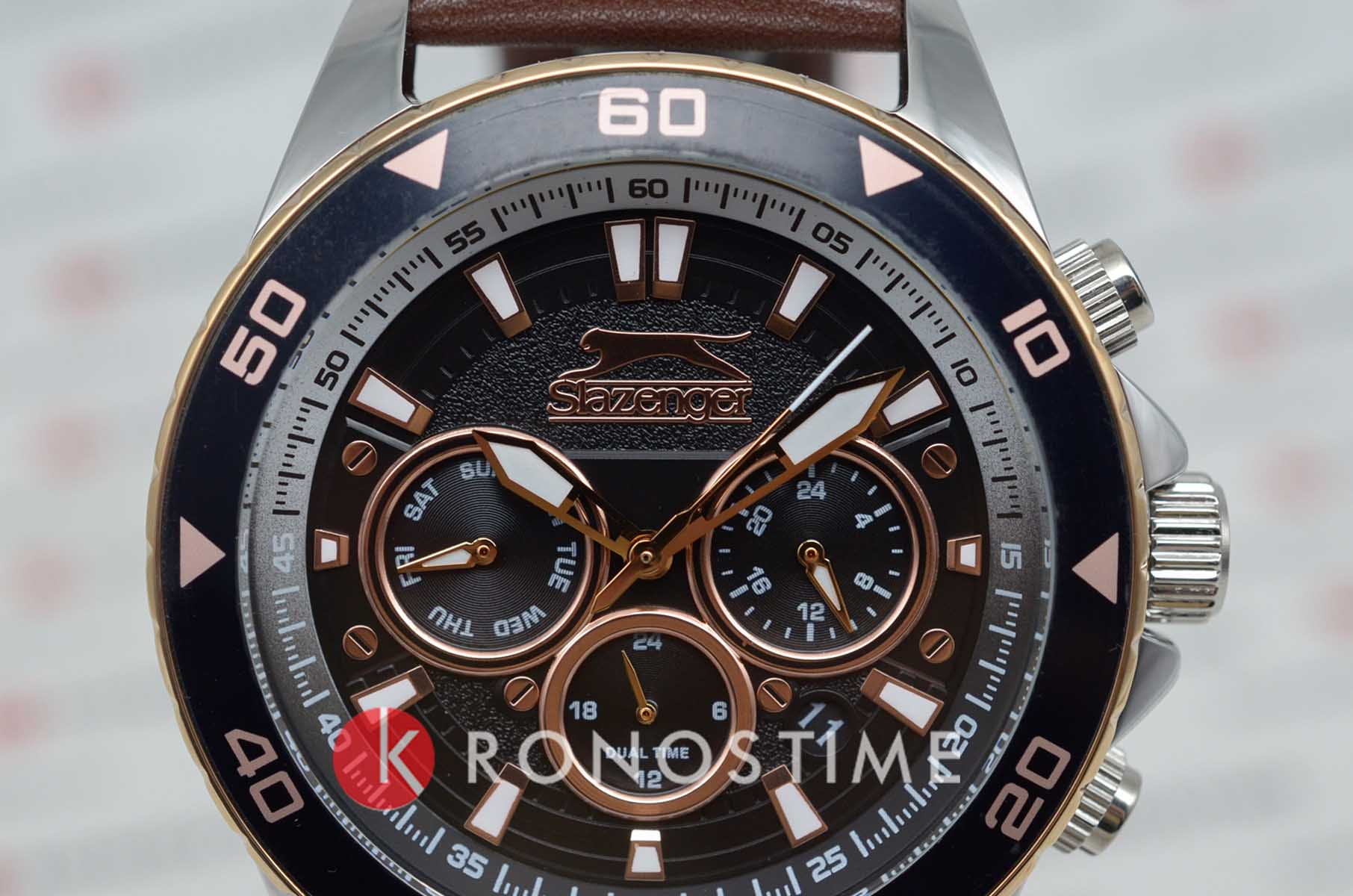Часы Slazenger SL.09.2251.2.04 — это стильная и практичная модель, выполненная в элегантном серебристом цвете. Корпус изготовлен из металла, что обеспечивает прочность и долговечность. На розово-золотистый безельБезельВнешний ободок, закрепляющий стекло. В спортивных часах так называется поворотное кольцо с делениями на циферблате, выполняет роль таймера – замеряет отрезки времени на шкале. Неподвижный безель – элемент декора. Однонаправленно вращающийся безель на дайверских часах позволяет фиксировать моменты погружения и выныривания на поверхность. нанесено черное IP-покрытиеIP-покрытиеМетод ионного напыления. Демонстрирует повышенную устойчивость к истиранию, окислению и химическим веществам. Под воздействием высокого давления и температуры около 1500°C молекулы металла надёжно соединяются с частицами корпуса часов.. Минеральное стеклоМинеральное стеклоМинеральное стекло представляет собой искусственно выращенный минерал кварца. Такое стекло отличается особой устойчивостью к повреждениям и царапинам. Уступает по некоторым качествам сапфировому стеклу. надежно защищает черный циферблат от царапин и повреждений. Классический кожаный ремешок коричневого цвета шириной 22 мм удобно фиксируется на запястье с помощью классической застежки. Диаметр корпуса составляет 44 мм, а толщина — 12 мм, благодаря чему часы смотрятся солидно и современно. Модель оснащена кварцевым механизмом, отличающимся точностью и надежностью. На циферблате представлены дополнительные малые циферблаты для отображения второго часового поясаВторой часовой поясФункция, позволяющая отображать время двух часовых поясов одновременно., дня недели и времени в 24-часовом формате, а также имеется отдельное окошко даты. Для удобства использования в темное время суток предусмотрено люминесцентное покрытиеЛюминесцентное покрытиеПозволяет считывать показания времени в темноте. Производители наносят на стрелки, часовые индексы, безель или поверхность циферблата светонакопительный состав, дающий холодное свечение. стрелок и меток. Заводная головка оснащена защитой. Водозащита уровня WR 50 позволяет не снимать часы при мытье рук или попадании под дождь. Вес модели составляет 70 грамм.