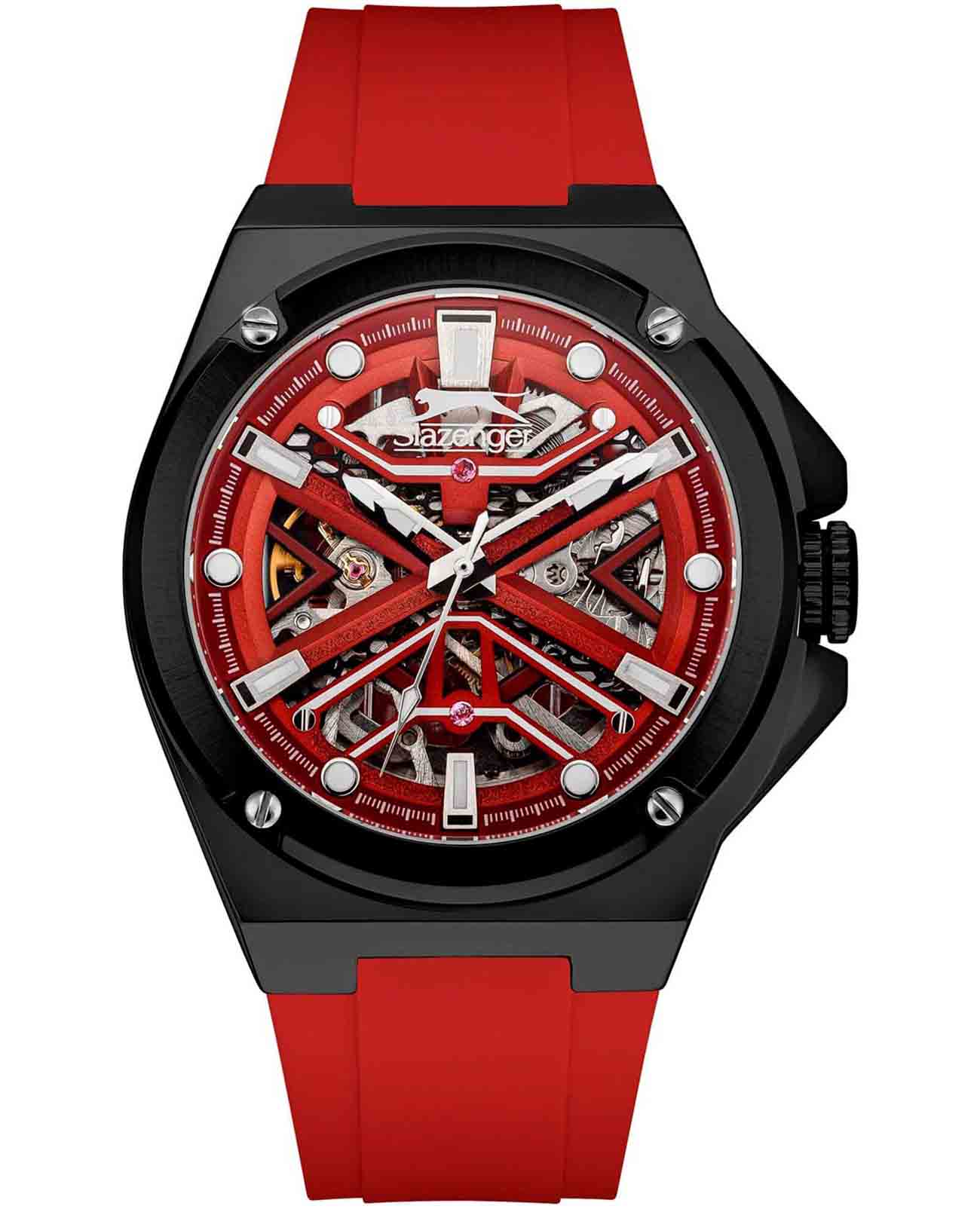 Часы Slazenger SL.09.2265.1.03 представляют собой гармоничное сочетание современного дизайна и надежных технических характеристик, созданное для динамичных и уверенных в себе людей. Модель оснащена механическим механизмом с автоподзаводом, что обеспечивает высокую точность и автономность работы. Круглый корпус диаметром 44 мм и толщиной 14 мм выполнен из прочного суперметалла с черным IP-покрытиемIP-покрытиеМетод ионного напыления. Демонстрирует повышенную устойчивость к истиранию, окислению и химическим веществам. Под воздействием высокого давления и температуры около 1500°C молекулы металла надёжно соединяются с частицами корпуса часов., а сатинированный безельБезельВнешний ободок, закрепляющий стекло. В спортивных часах так называется поворотное кольцо с делениями на циферблате, выполняет роль таймера – замеряет отрезки времени на шкале. Неподвижный безель – элемент декора. Однонаправленно вращающийся безель на дайверских часах позволяет фиксировать моменты погружения и выныривания на поверхность. с 4 винтами придаёт изделию особую элегантность. Красный скелетонизированный циферблат с метками в виде точек и штрихов защищён прочным минеральным стекломМинеральное стеклоМинеральное стекло представляет собой искусственно выращенный минерал кварца. Такое стекло отличается особой устойчивостью к повреждениям и царапинам. Уступает по некоторым качествам сапфировому стеклу., что гарантирует устойчивость к царапинам и механическим воздействиям. Стрелки и метки с люминесцентным покрытиемЛюминесцентное покрытиеПозволяет считывать показания времени в темноте. Производители наносят на стрелки, часовые индексы, безель или поверхность циферблата светонакопительный состав, дающий холодное свечение. обеспечивают отличную читаемость времени даже в темноте, светясь после непродолжительного воздействия света. Заводная головка оснащена защитой для дополнительного удобства использования. Прозрачное окошко на задней крышке позволяет наблюдать за работой механизма, добавляя модели технического шарма. Удобный красный силиконовый ремешок шириной 26 мм с классической застёжкой обеспечивает комфортную посадку на запястье. Водозащита 50WR позволяет не беспокоиться о попадании влаги при повседневном использовании. Вес часов составляет 116 грамм, что делает их надёжным и стильным аксессуаром для любого случая.